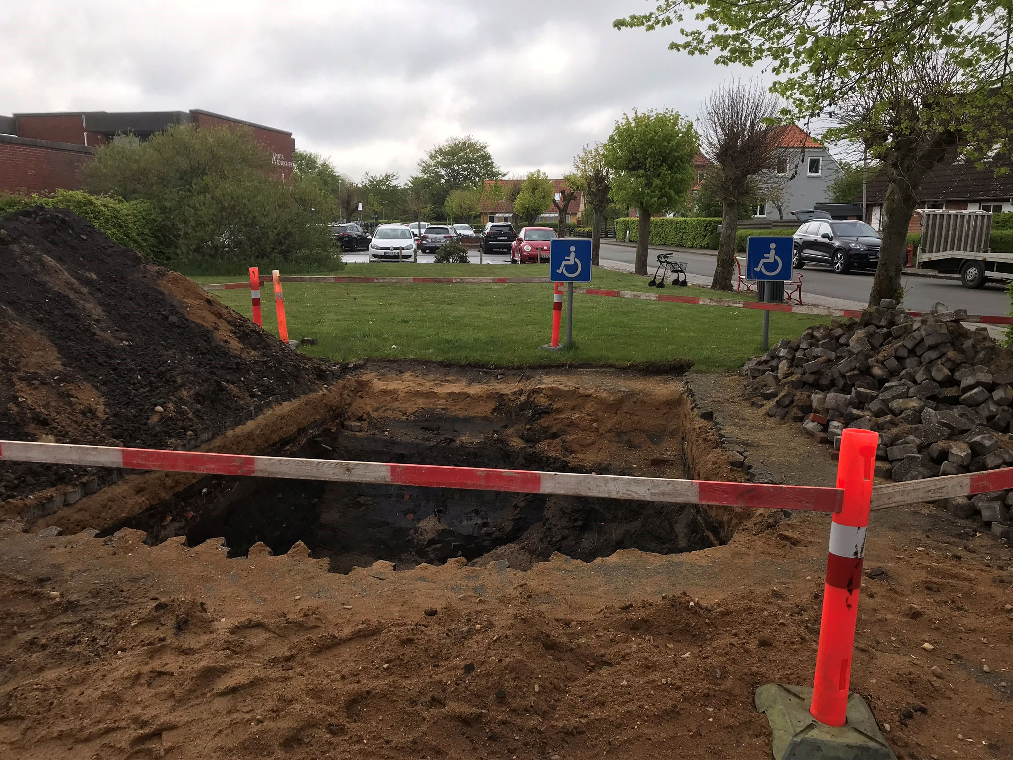 På gåturen kom jeg forbi det gamle apotek i Tvedgade. Nu ved jeg den lokale parkeringsvagt er meget opmærksom på om man holder på en af disse pladser, den plads på billedet tror jeg at jeg vil springe over. For øvrigt ved jeg ikke hvad der graves efter, måske nogen kan gøre mig klogere på det, for det er vel næppe nedsænket parkeringspladser man er i gang med.
