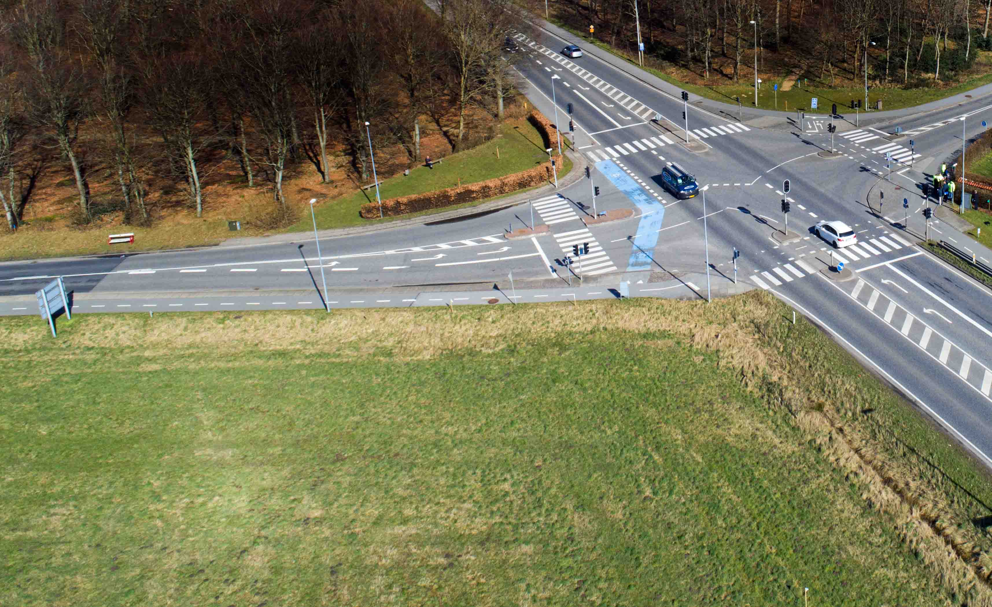 Dronefoto med marken, hvor arbejdet er blevet påbegyndt