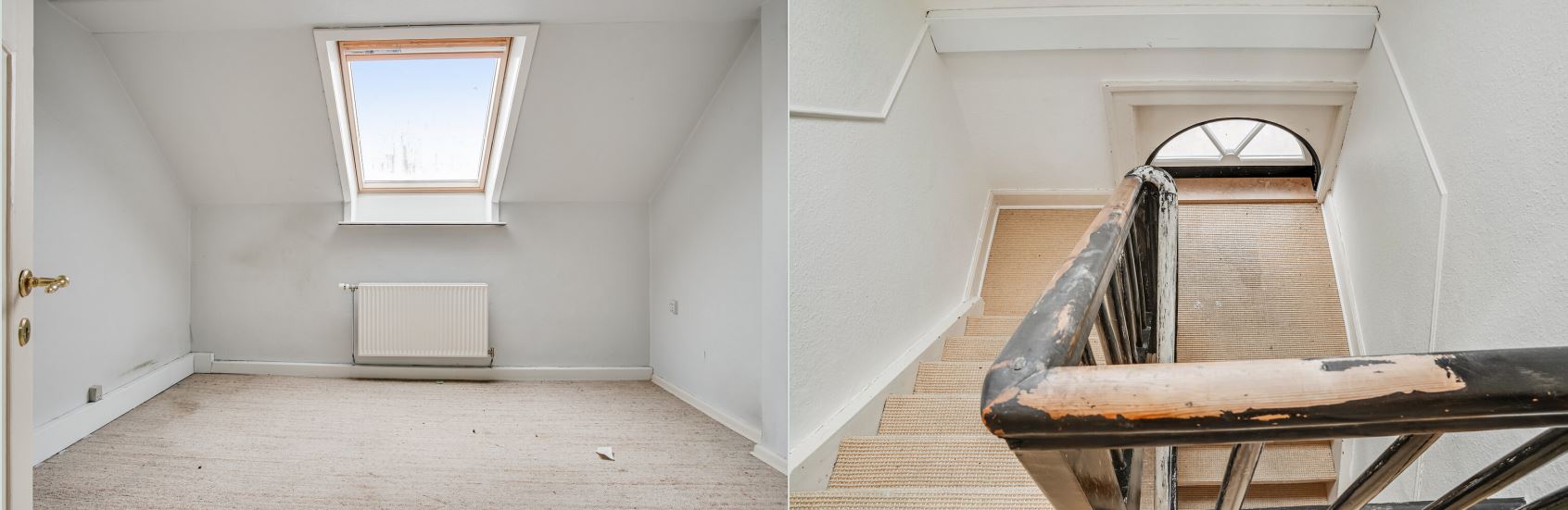 Ejendomsmægleren siger videre om ejendommens tilstand, der giver mulighed for både beboelse og erhverv – og hvor CVR er et krav: – Indvendigt skal der jo gøres “lidt”, da der er flere brugstegn.