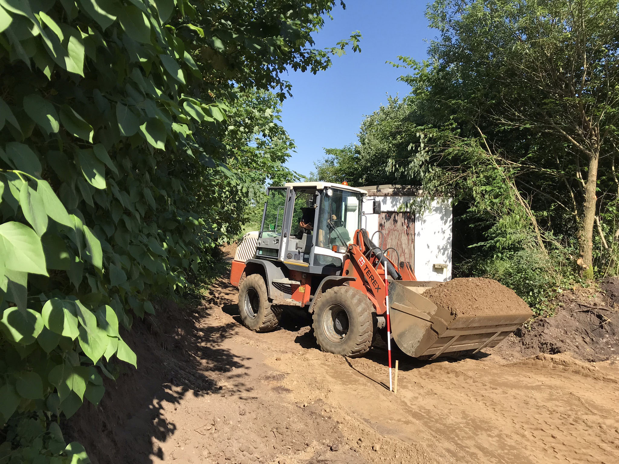 Det er sol og det er sommer, det er onsdag. Kl. bliver 12.00 indstilles arbejdet, for chefen og medarbejderne skal en tur til Anlægsgartnerskolen i Beder ved Odder, hvor Jonas i dag bliver udlært anlægsgartner. Ryk Ind Ribe besøgte onsdag en af vores annoncører, JRJ, ved Jesper Rohr Jørgensen, der var ved at afslutte et projekt ved Ribe Tennis Klub. Selv om det er varmt og vi arbejder lige i solen, skal noget fra hånden for arbejdet skal være færdigt i dag.