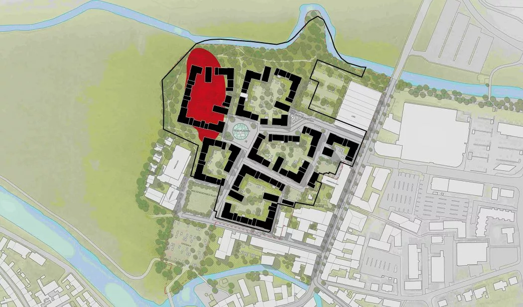 RYK IND RIBE har været forbi bygningen i det nordvestlige hjørne, som er blevet afmærket rødt på kortmaterialet – benævnt forurenet område. Det kan ikke anvendes til beboelse, men med forsegling rumme et større parkeringsområde.