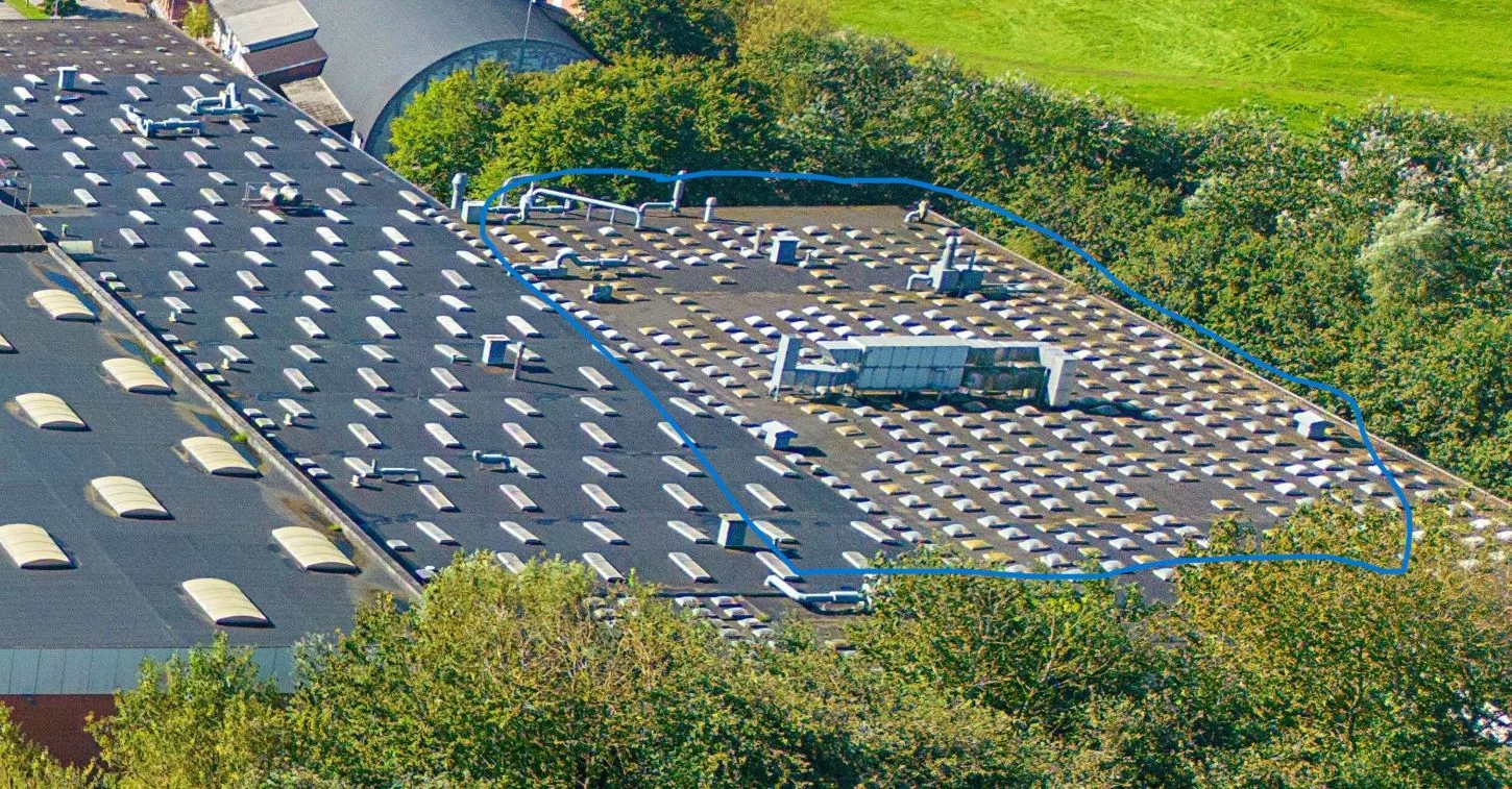 Forurenet område under denne del af bygningsmassen (dronefoto: Ove Detlevsen)