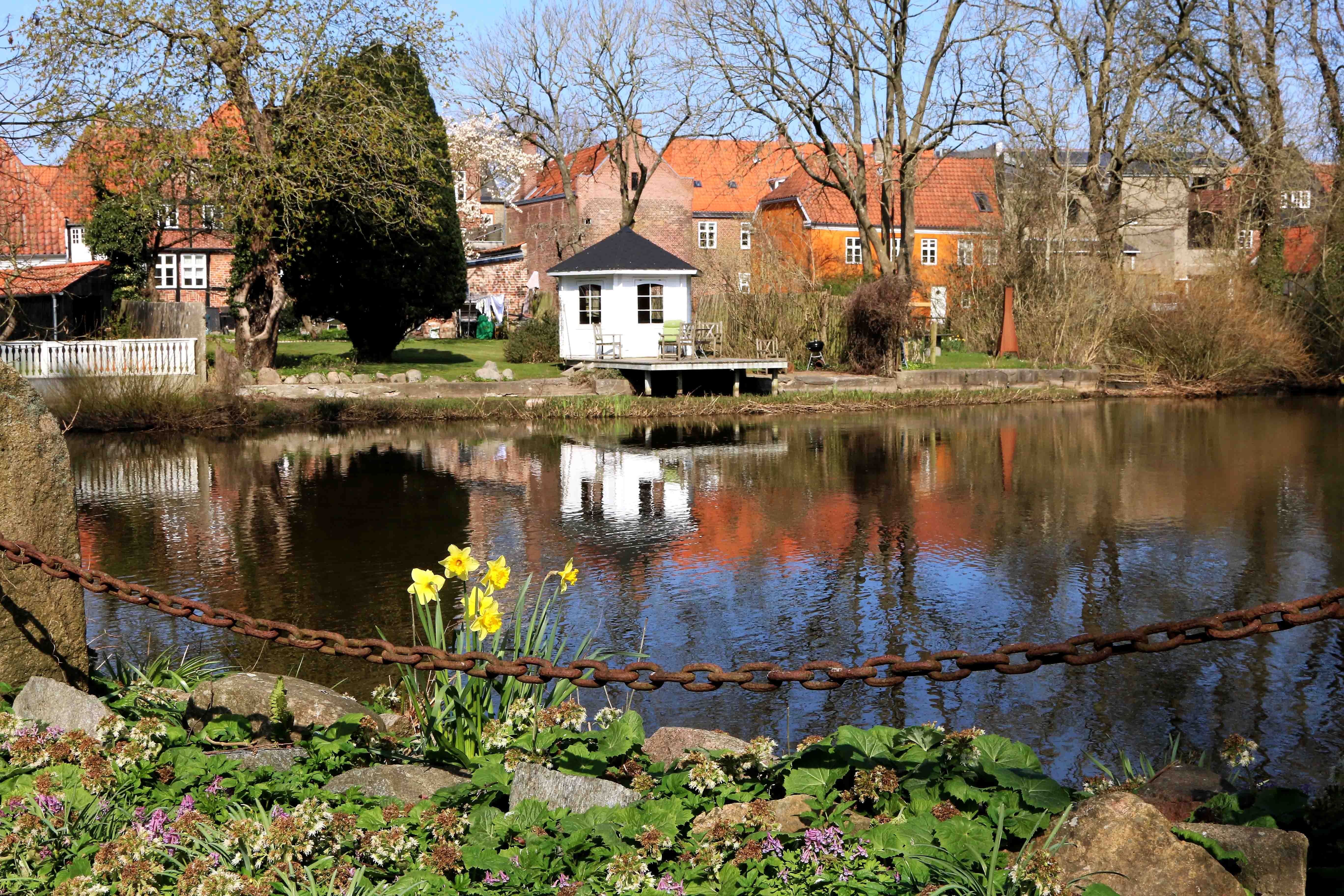Vandspejlet er næsten helt roligt til trods for, at frislusen ligger “lige rundet om hjørnet” til venstre