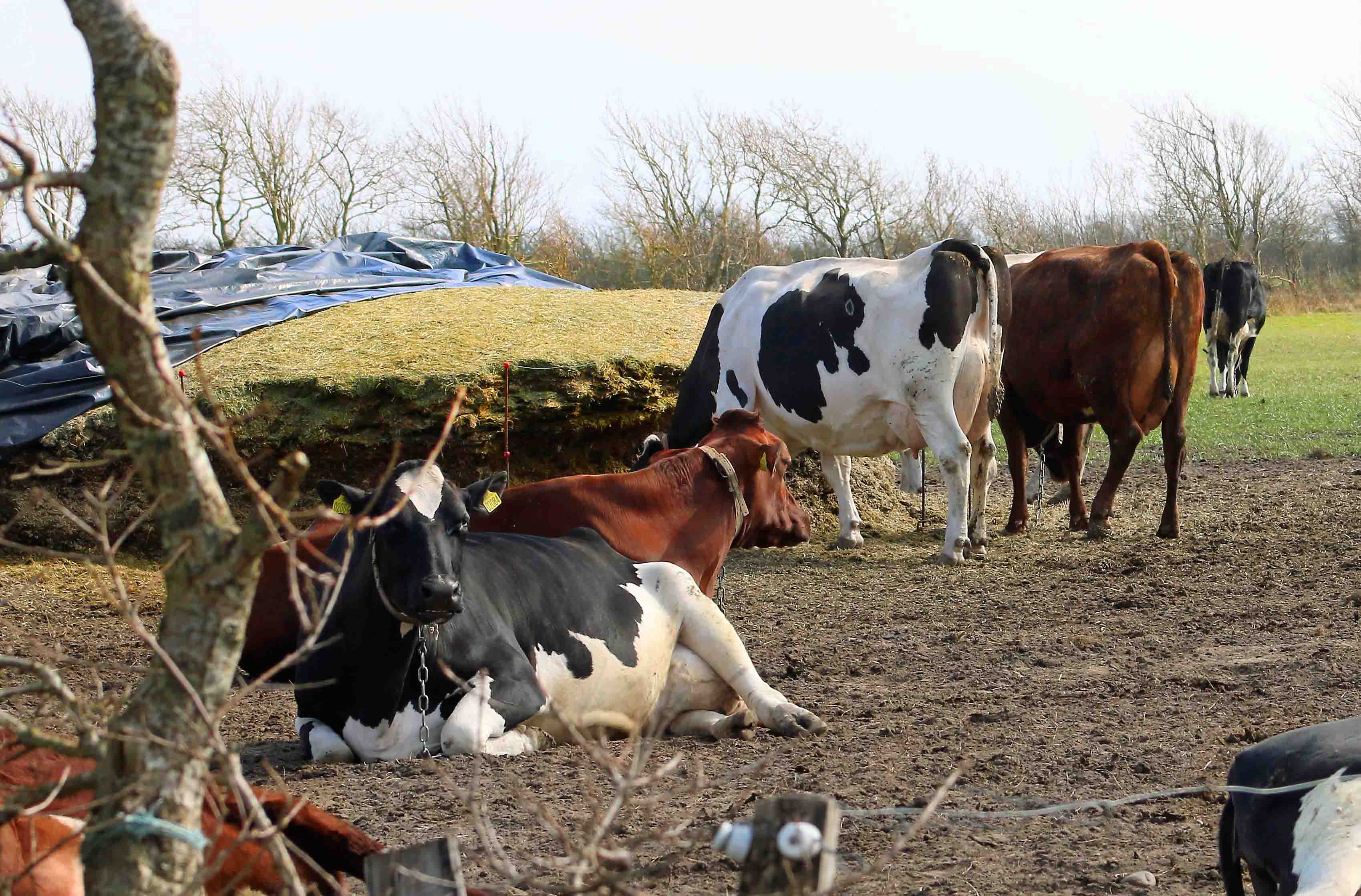 Men andre nød også det gode vejr – her er RYK IND RIBE taget ud til Bjerget vest for Vilslev, hvor en gruppe kreaturer havde lagt sig i sandet, mens andre havde travlt med at æde.