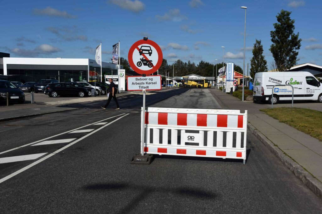 Sagen er, at der skal lægges ny asfalt på den del af industrivej, der går fra det lysregulerede kryds ved hovedvejen op til krydset ved Bohrsvej, og da arbejdet foregår i dagtimerne, giver det nogle trafikale udfordringer med at komme til og fra de butikker, der ligger ved strækningen.