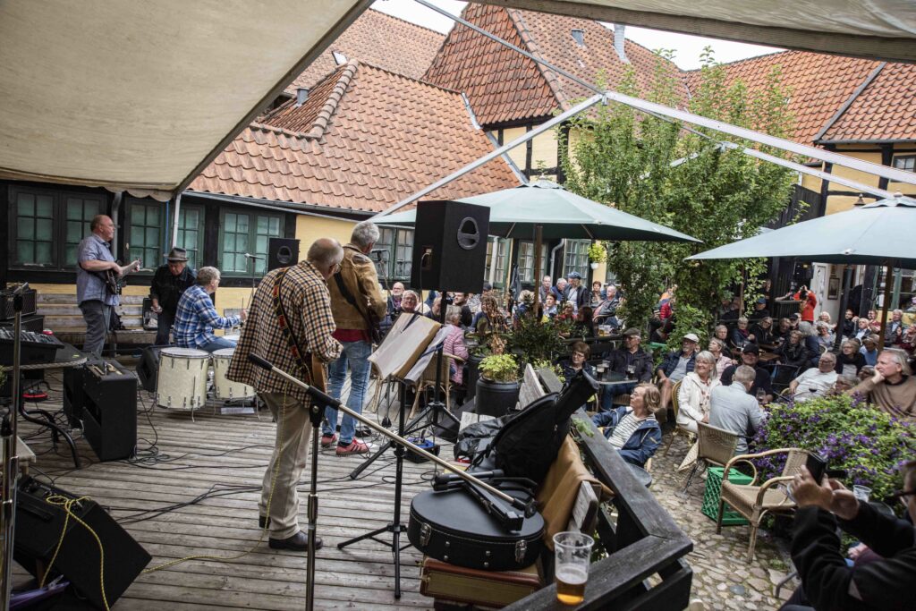 Et andet musikarrangement, der blev gennemført var RIBER ROCK, der efter et års pause var tilbage i Postgårdens gård. Et godt forsalg og de solgte billetter på dagen gav de lystne musikelskere en pragtfuld eftermiddag – ind imellem med sol, men i tørvejr. Mange havde taget turen til Ribe. Traditionen tro, fristes man til at sige, var de to familier fra Randers på plads, og læsere af RYK IND RIBE vil vide, at de altid har en stor pose slik med, som netavisens fotograf nyder godt af. Mange af de faste gæster – ripensere – der vender hjem, forstår at feste sammen med familierne fra Randers. Og hyggelige mennesker er de, og da de i en snak fandt ud af fotografen, kommer i Randers, blev der straks aftalt et café-besøg på den randrusianske café Jens Otto (Krag) i nær fremtid. RIBER ROCK bringer meget med sig – og de mange gæster kommer år efter år for at nyde musikken og hinandens selskab.