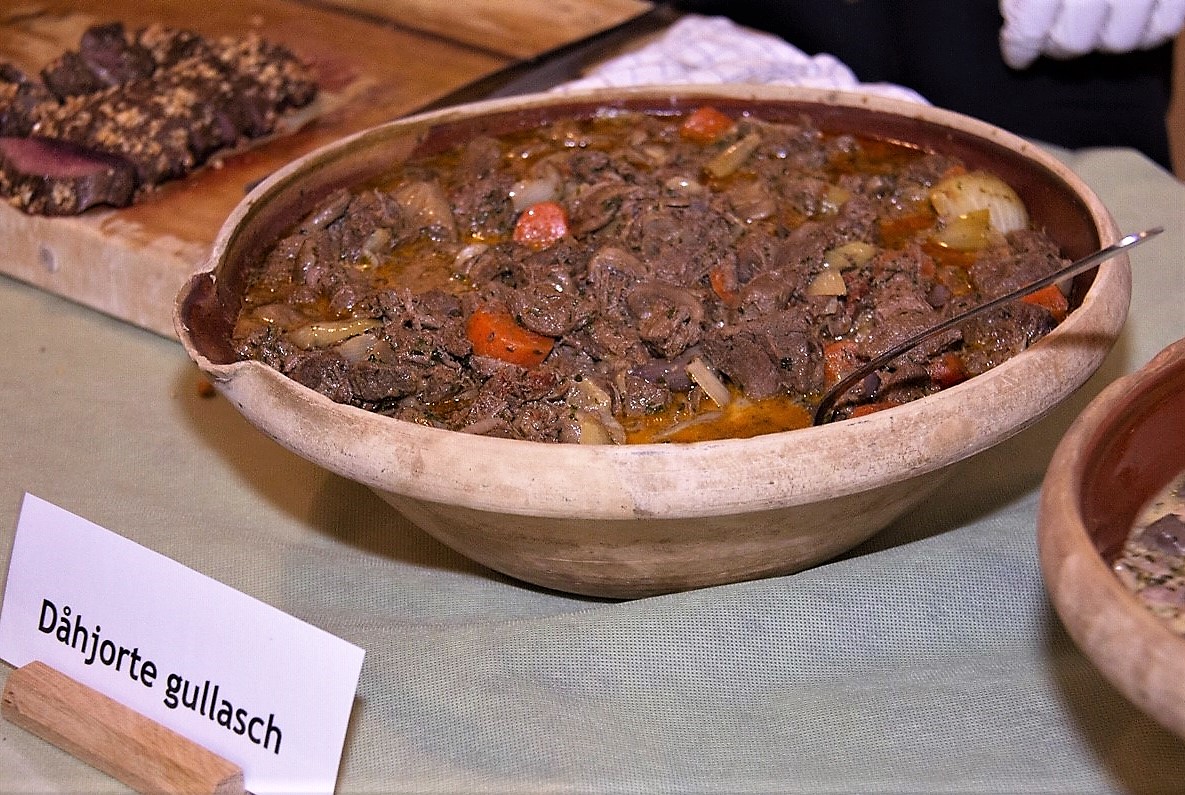 Se blot her et miniuddrag af den lange menu: Dåhjorte gullasch, Nøddepaneret dådyrryg, langtidsstegt dådyr kølle.