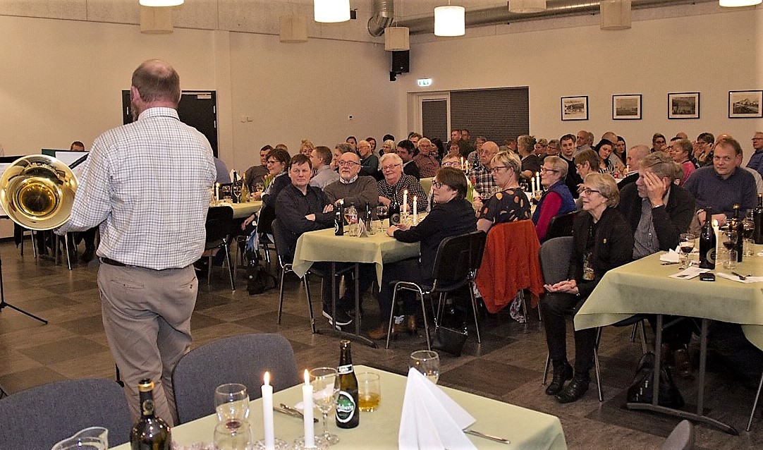 Det er støtteforeningen for Roager Medborgerhus, der arrangerer VILDT festen, hvor der også var underholdning af ”Vadehavsblæserne”, som spillede på jagthorn.