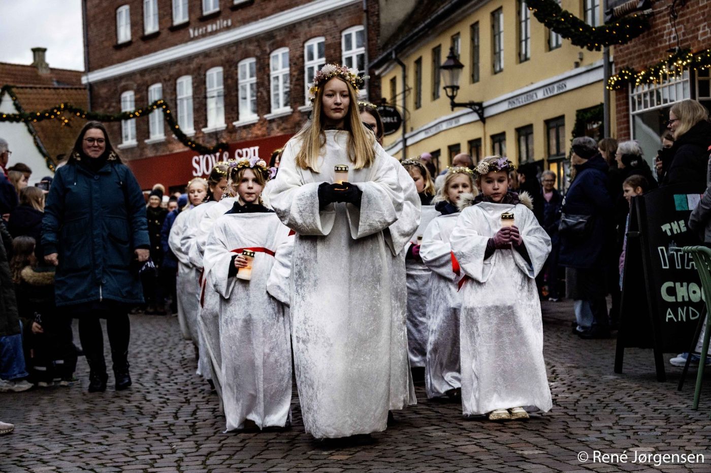 I dag kl. 15.30 blev Ribe fyldt med stemningsfuld sang og levende lys, da Ribe Domkirkes børnekor gik det traditionsrige Luciaoptog gennem byen fra Lasbo Photocare og videre gennem gågaden.