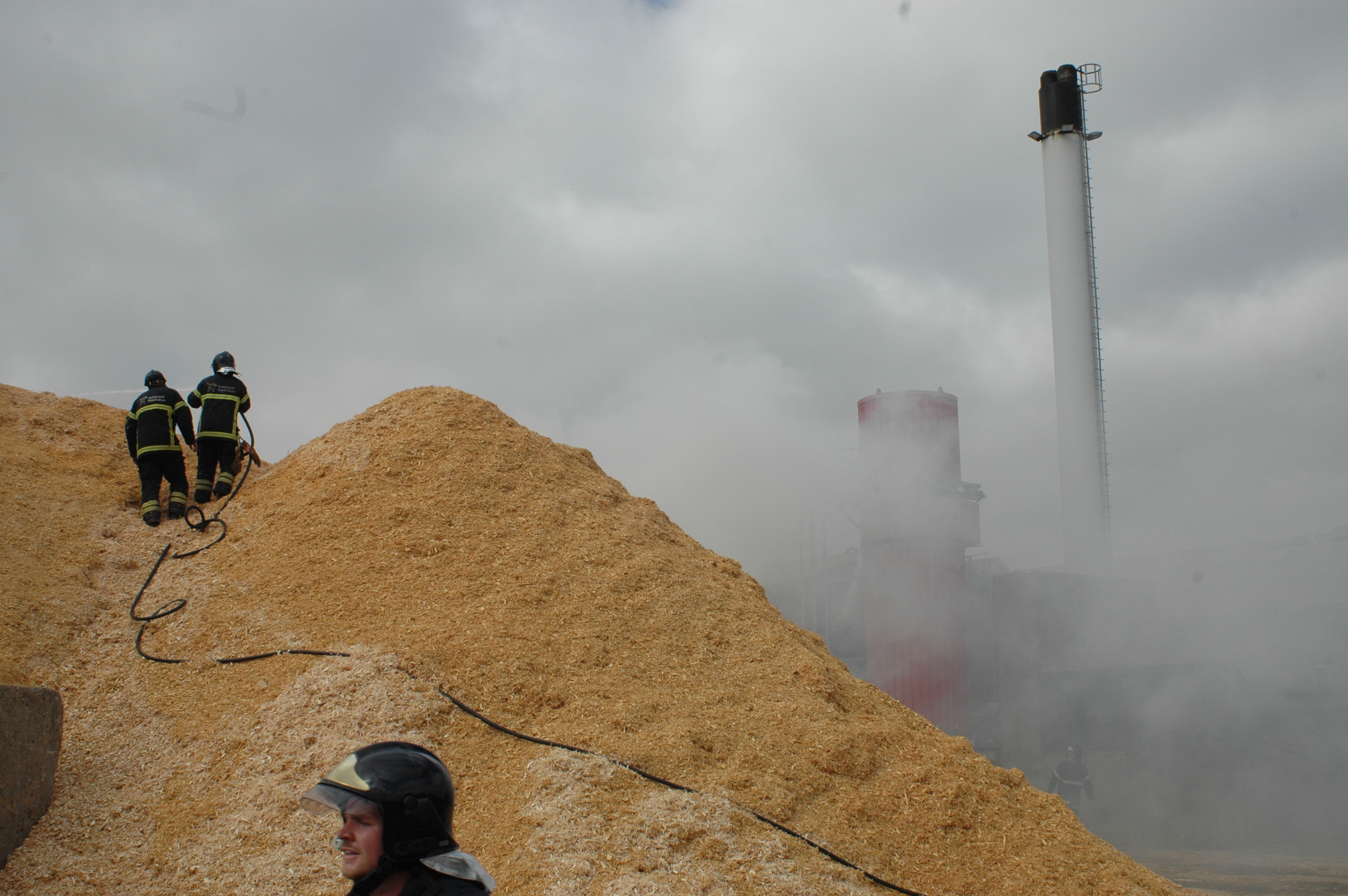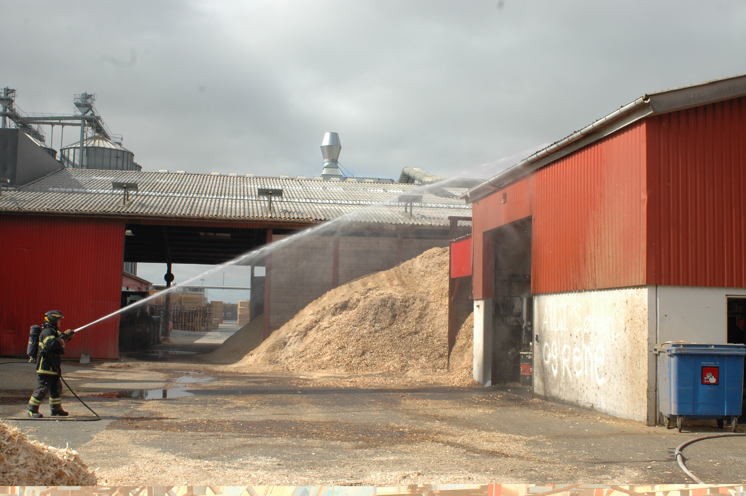 Branden blev slukket på omkring tre timer, men netop på grund af det tørre vejr og faren for genopblussen, blev der etableret brandvagt på virksomheden hele natten.