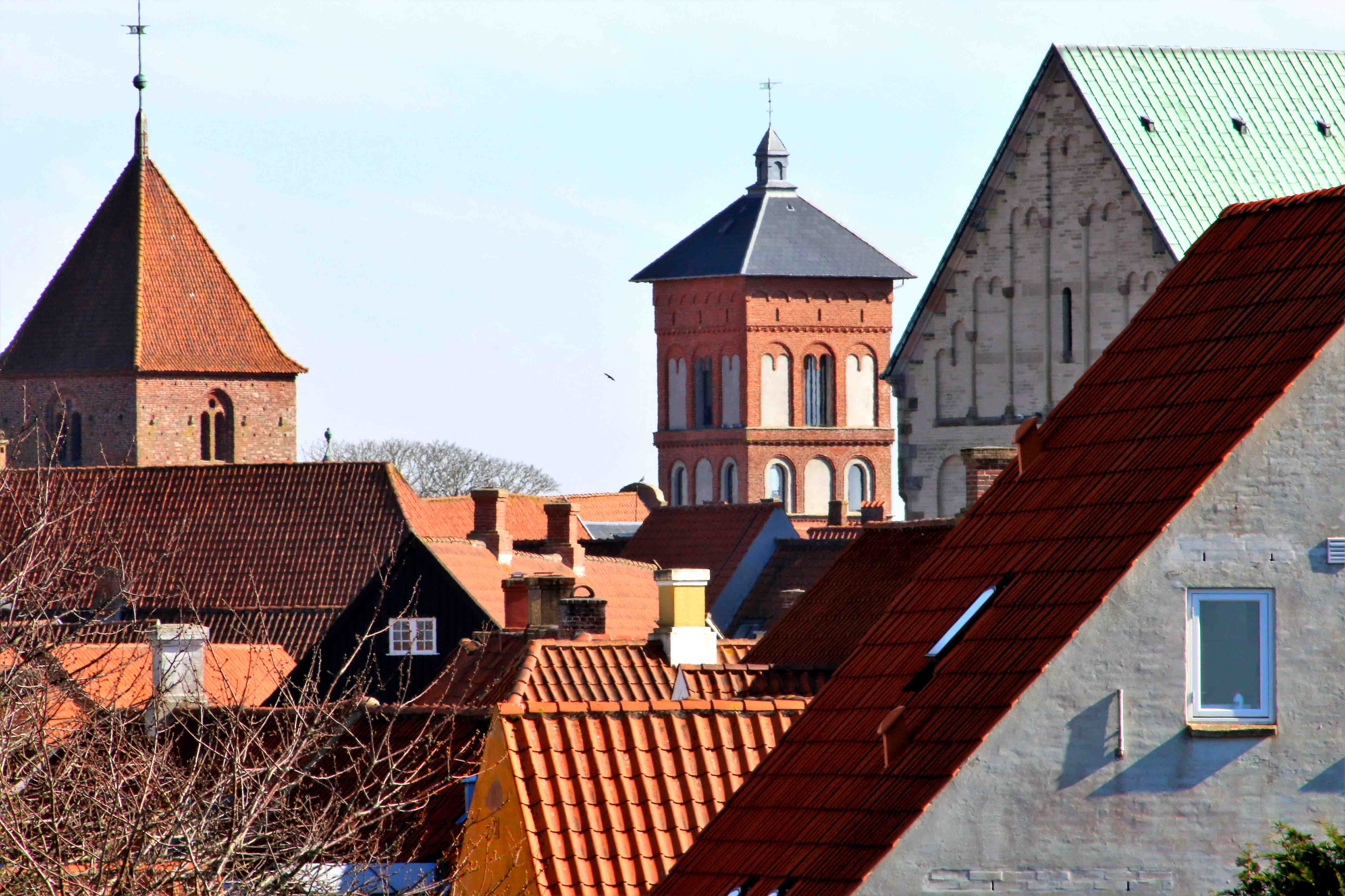 Når Dronning Dagmar skuer ind over byen, så indtager den prægtige, imponerende og altdominerende domkirke naturligvis billedet, men hvis man indsnævrer fokusfeltet, så sker noget helt andet. En kirke med for lavt et tårn, et italiensk inspireret vandtårn og to stærekasser.