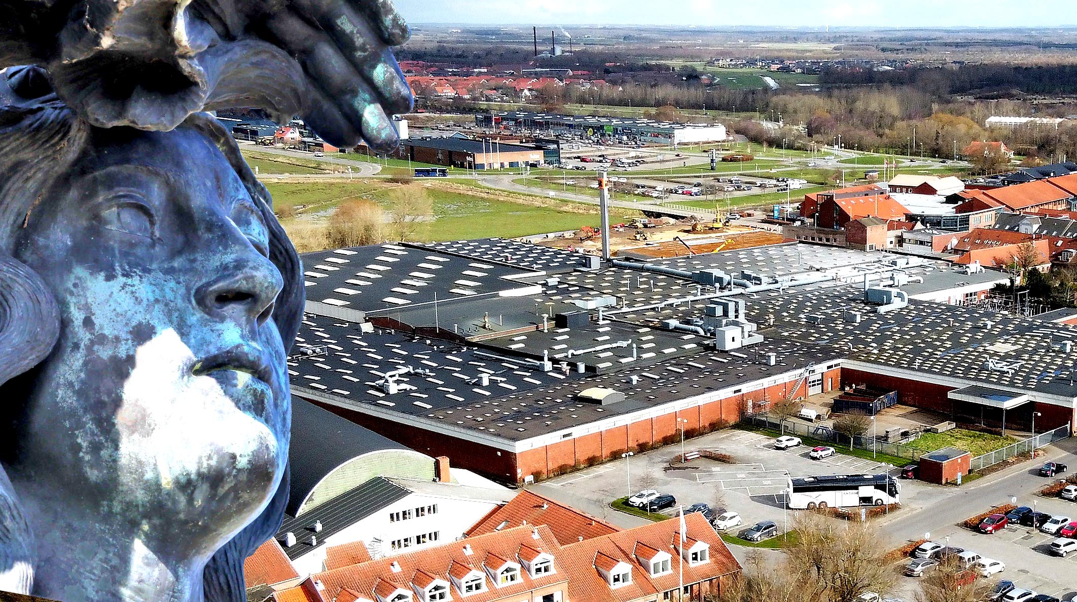 Når Dronning Dagmar skuer mod nordøst, ser hun endnu den store bygningsmasse, hvor der i en menneskealder blev produceret radiatorer.