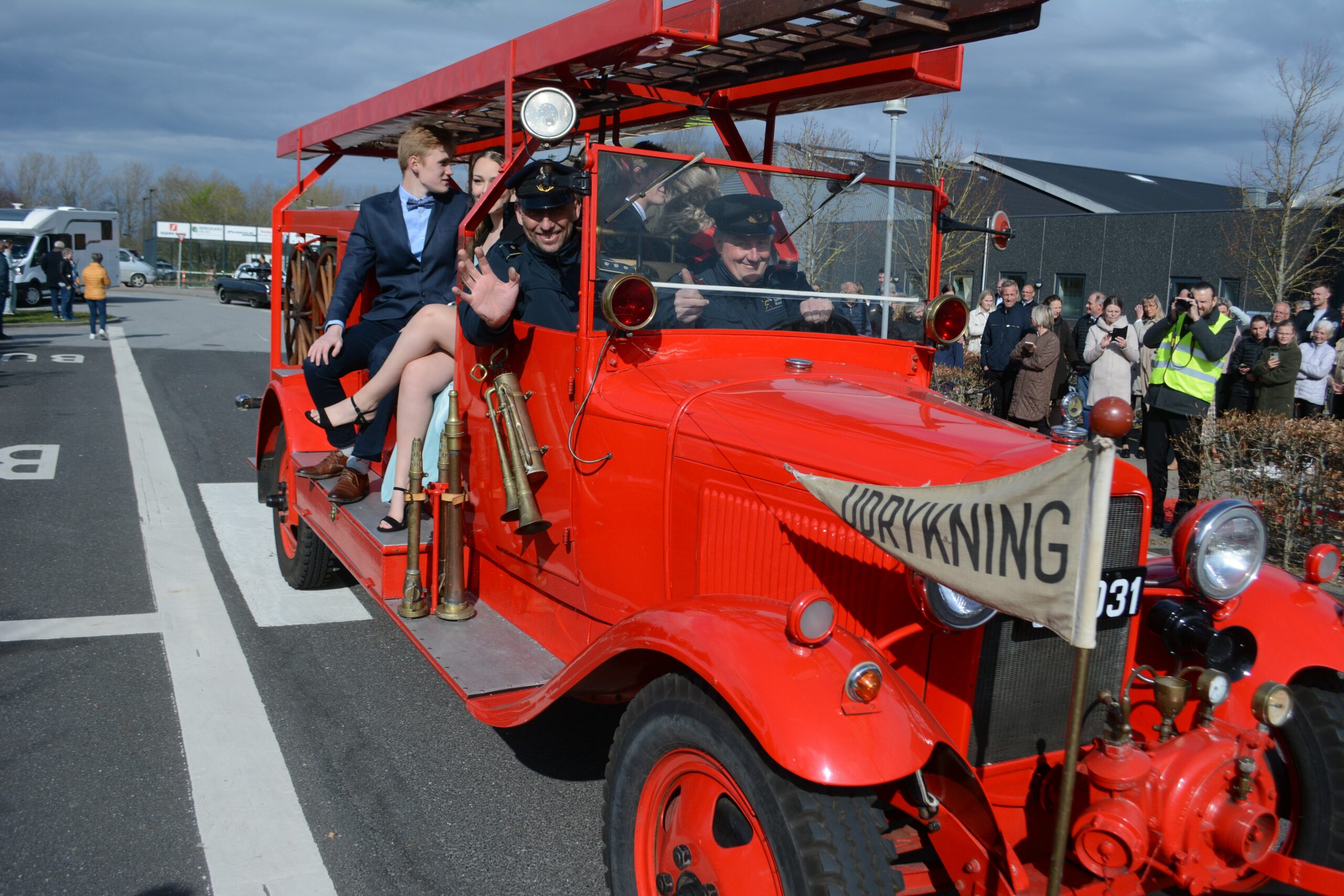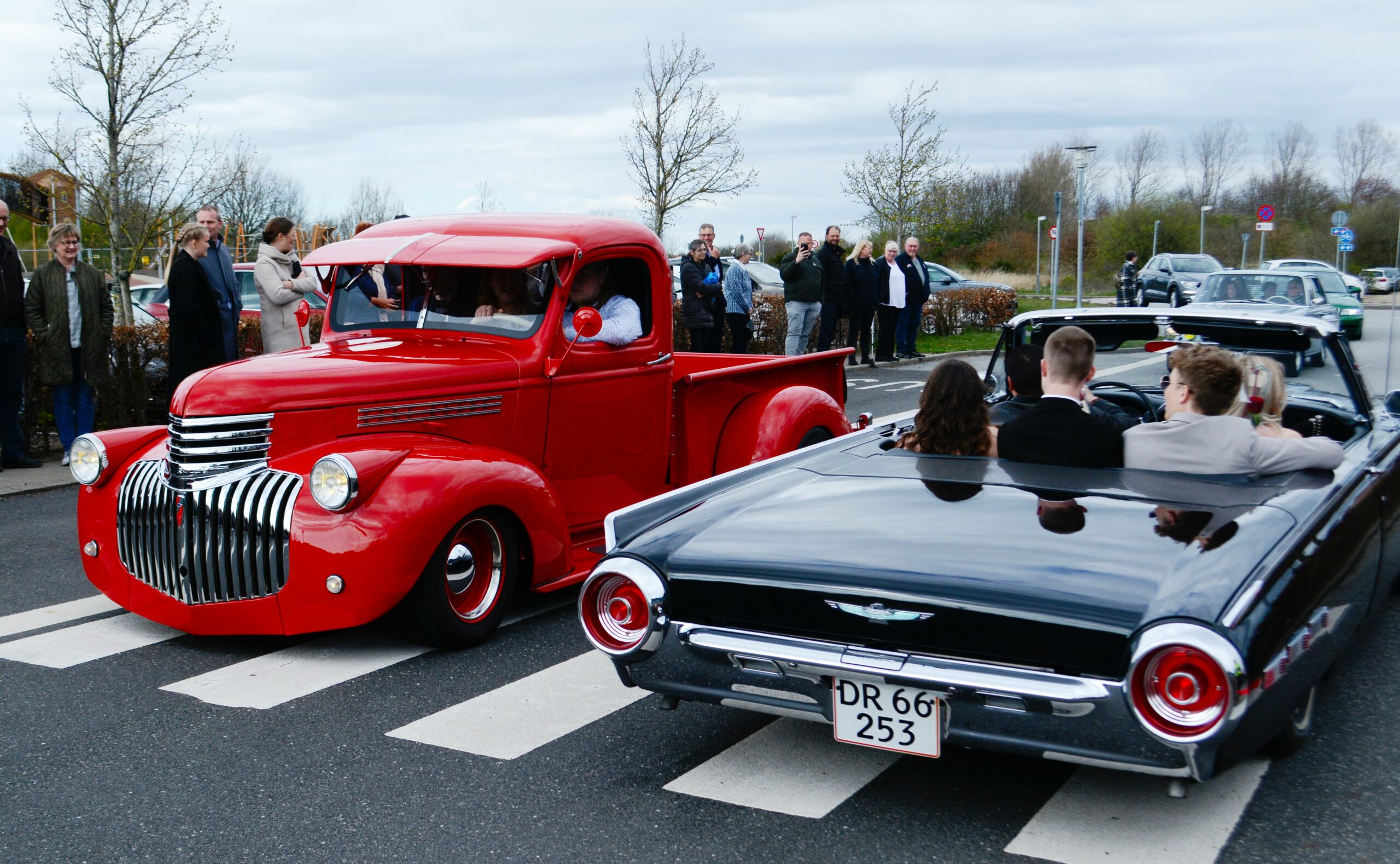 Det hele startede fredag aften med, at festdeltagerne – eleverne – blev kørt til Ribe Fritidscenter i alle mulige former for køretøjer. Lige fra trillebør og ladcykel til en stor tons tung lastvogn. Og ind i mellem de to kategorier var der tale om alt muligt lige fra Ribe Brandmandsforenings gamle brandbil til golfvogne, hestevogne, limousiner, en gammel militærjeep, amerikanske flydere og helt moderne biler.