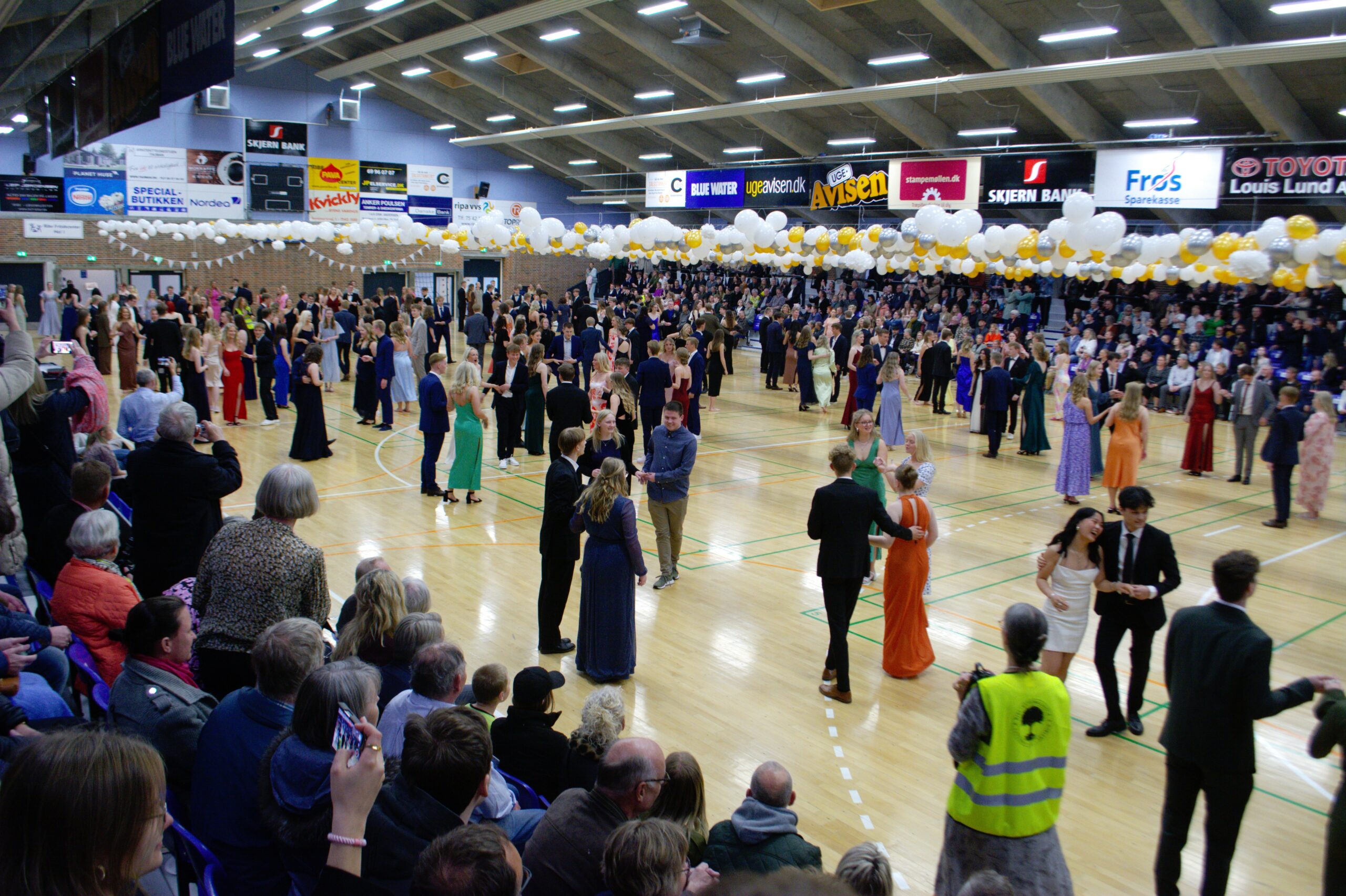 Således vel ankommet til fritidscenteret, blev der budt op til lancier i hal 1, og som rektor Kristian Bennike kunne sige i sin velkomst, har mange studerende mistet meget i deres studentertid på grund af koronaen.
