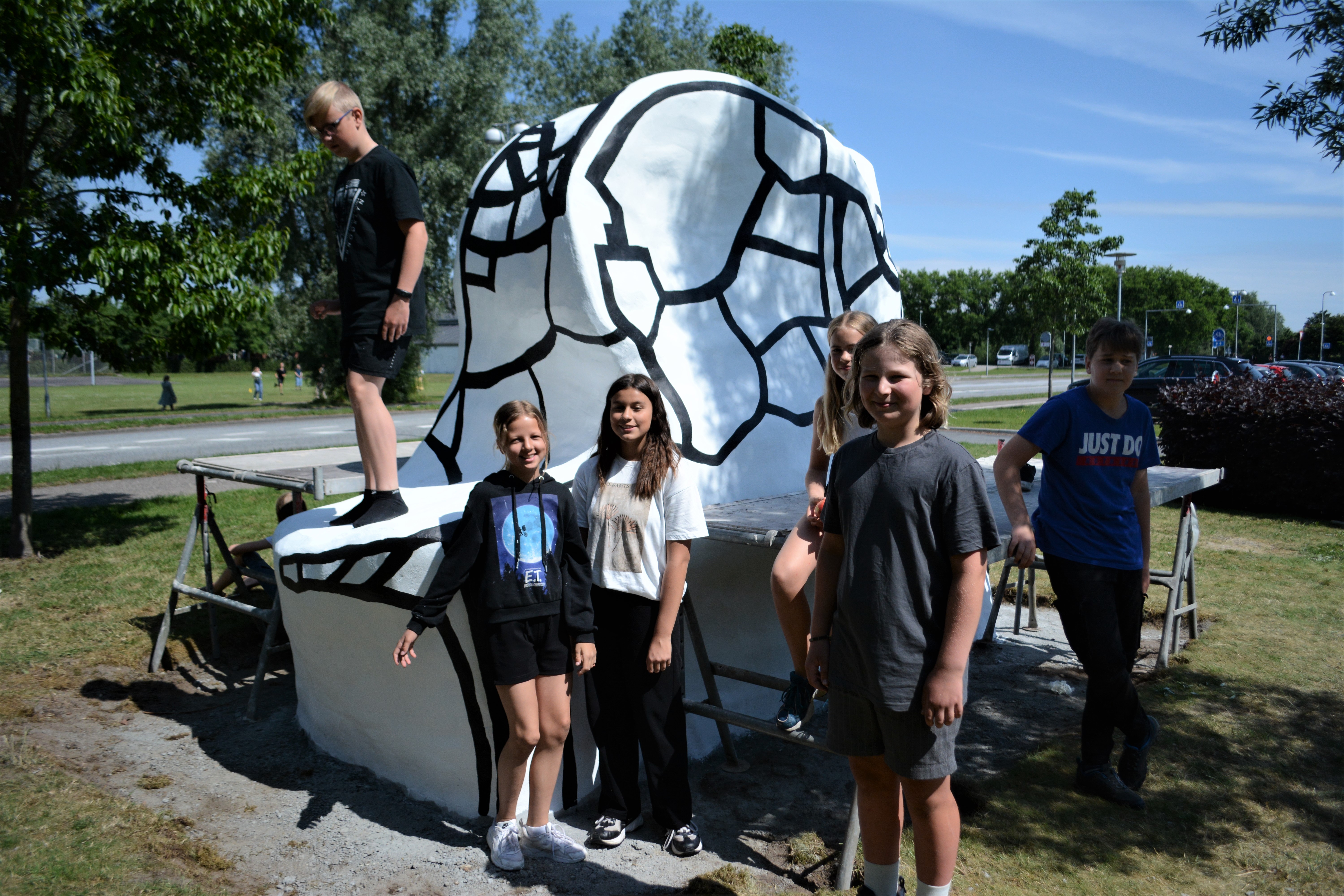 De sidste dage har eleverne været i værd med at bemale skulpturen, der er udført i beton.