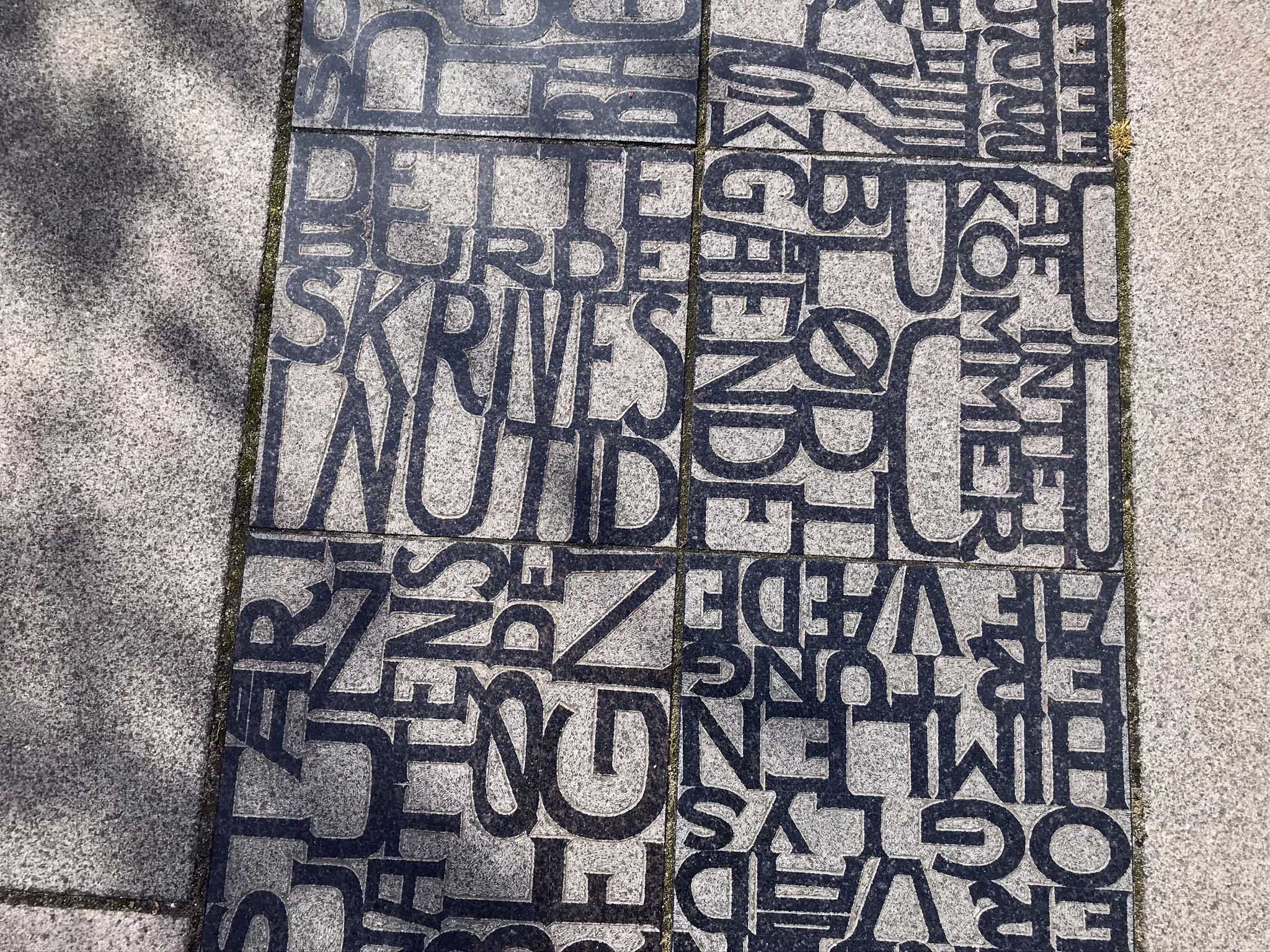 Kunstværket af Laila Westergaard i skolegården på Ribe Katedralskole. 113 fliser med citater af digte, sagn og romaner. Det ene er skrevet af rapperen Pers Vers, der selv har været elev på skolen.
