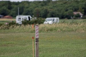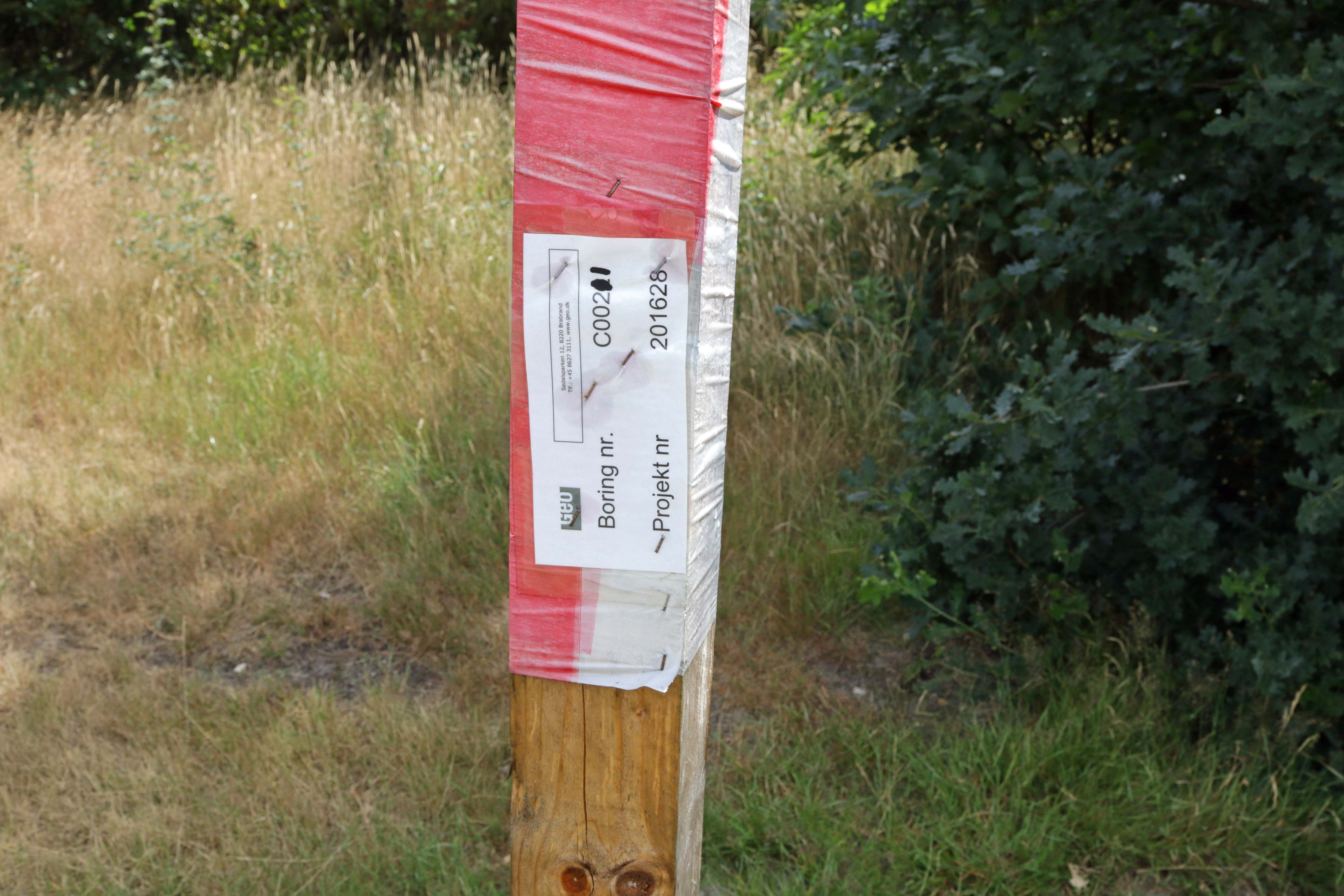 Målepinde viser, hvor der er foretaget undersøgelser på græsmark på vestsiden