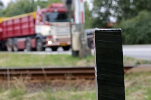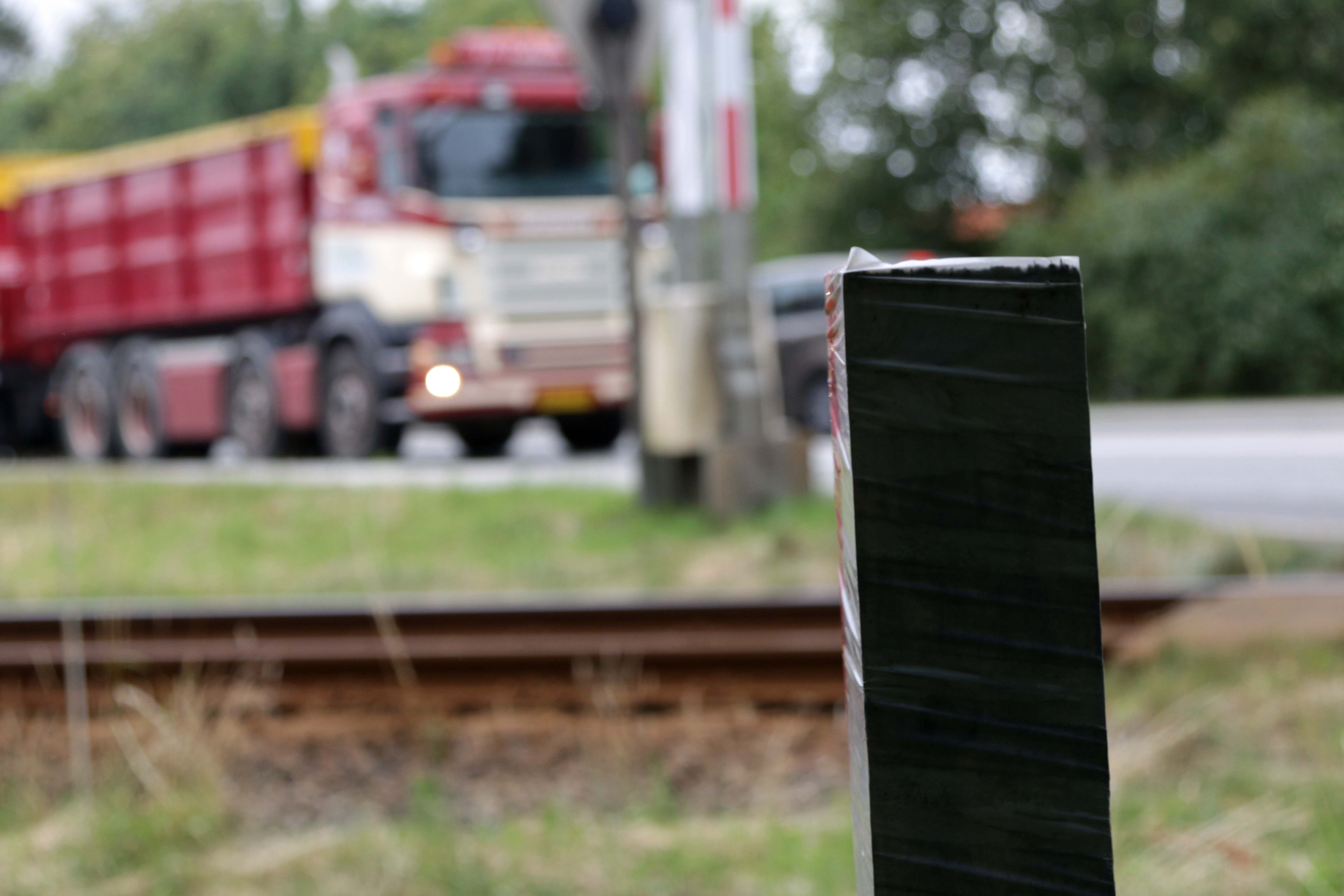 Målepind vest for hovedvejen – ved jernbaneoverkørslen