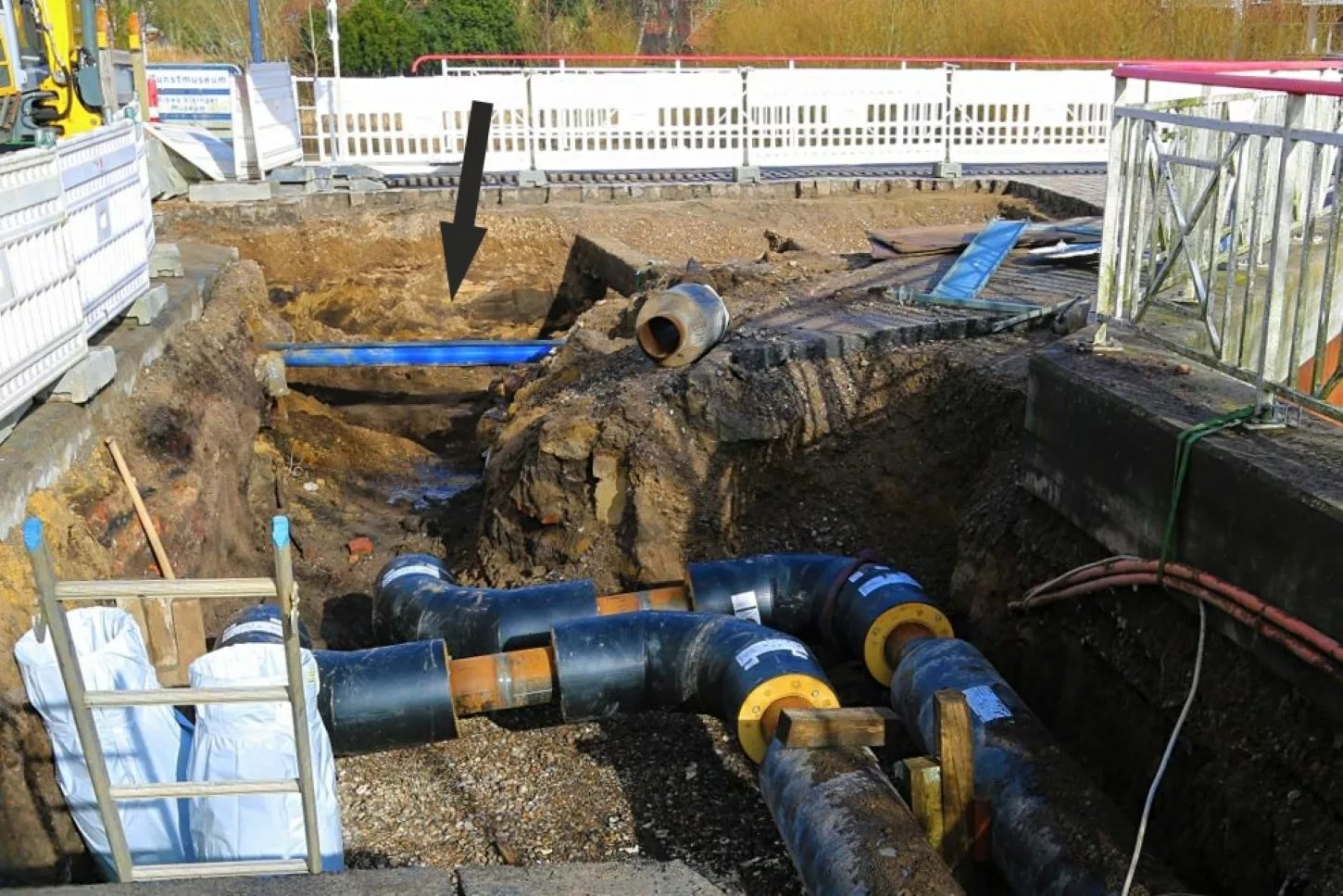 Nu venter Dagmarbroen, hvor to fjernvarmerør skal placeres oven over hinanden, inden de igen på den anden side i Dagmarsgade vil blive placeret side om side!
