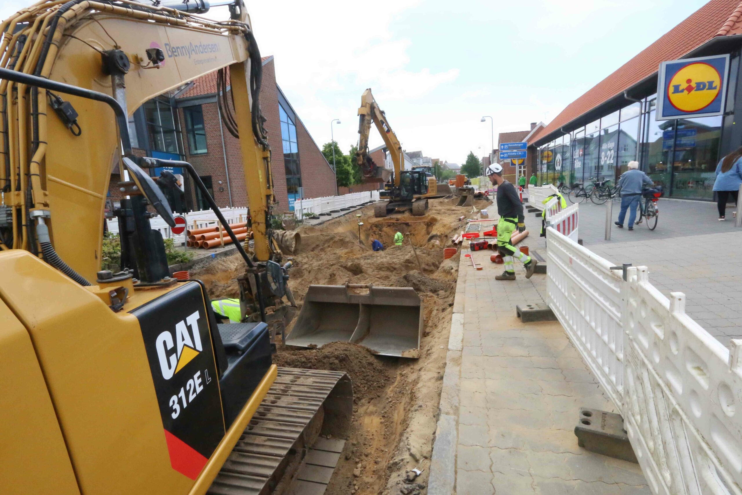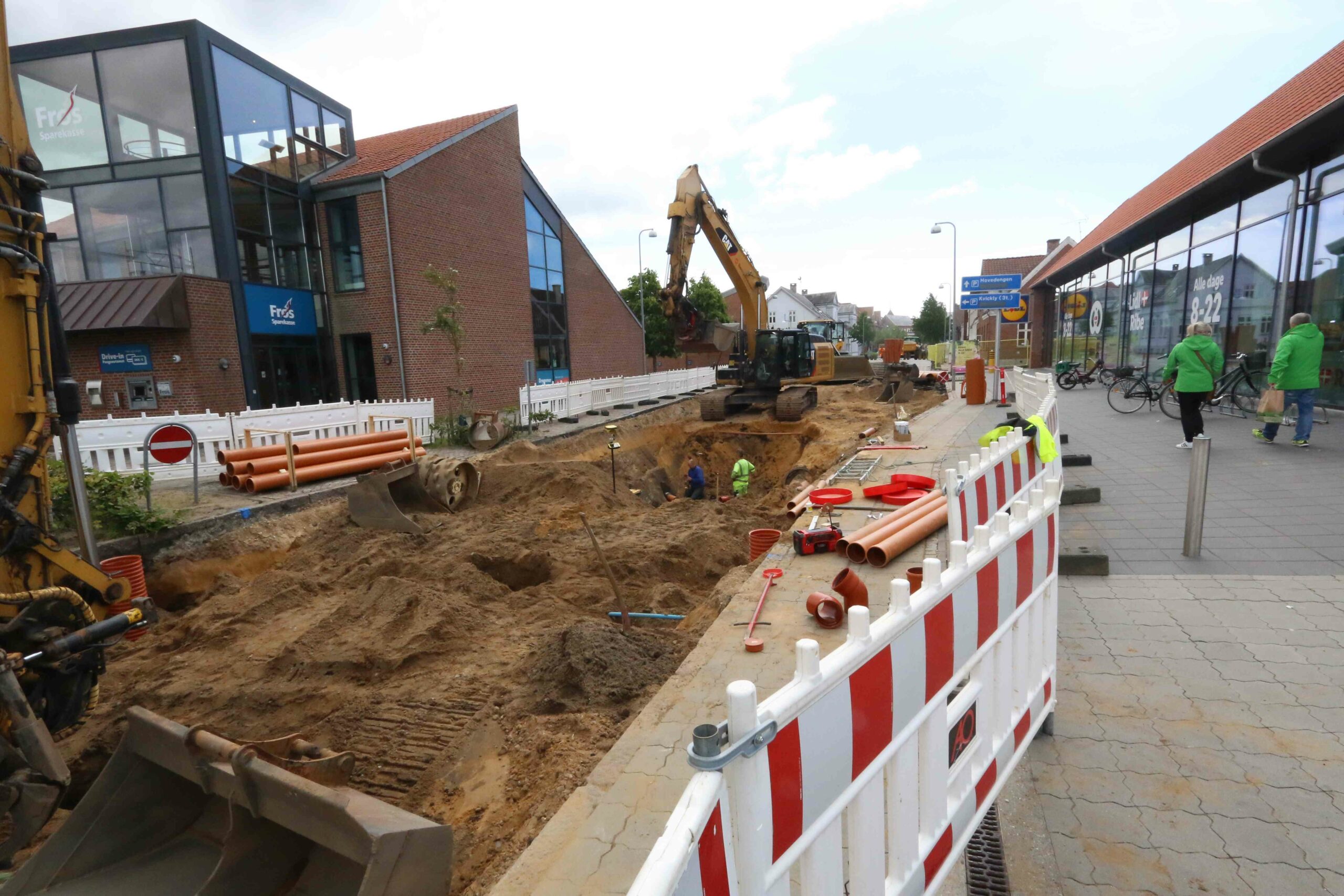 Arbejdet med at kloakseparere fra Hvide Bro frem mod krydset Seminarievej / Saltgade forløber planmæssigt. Firmaet Benny Andersen er stille og roligt ved at “lukke” hullet bag sig, så der kan etableres indkørsel til LIDLs parkeringsplads fra nord, når gravearbejdet i Saltgade lukker for den midlertidige vej ind ved den tidligere portnerbolig – bag om butikken.