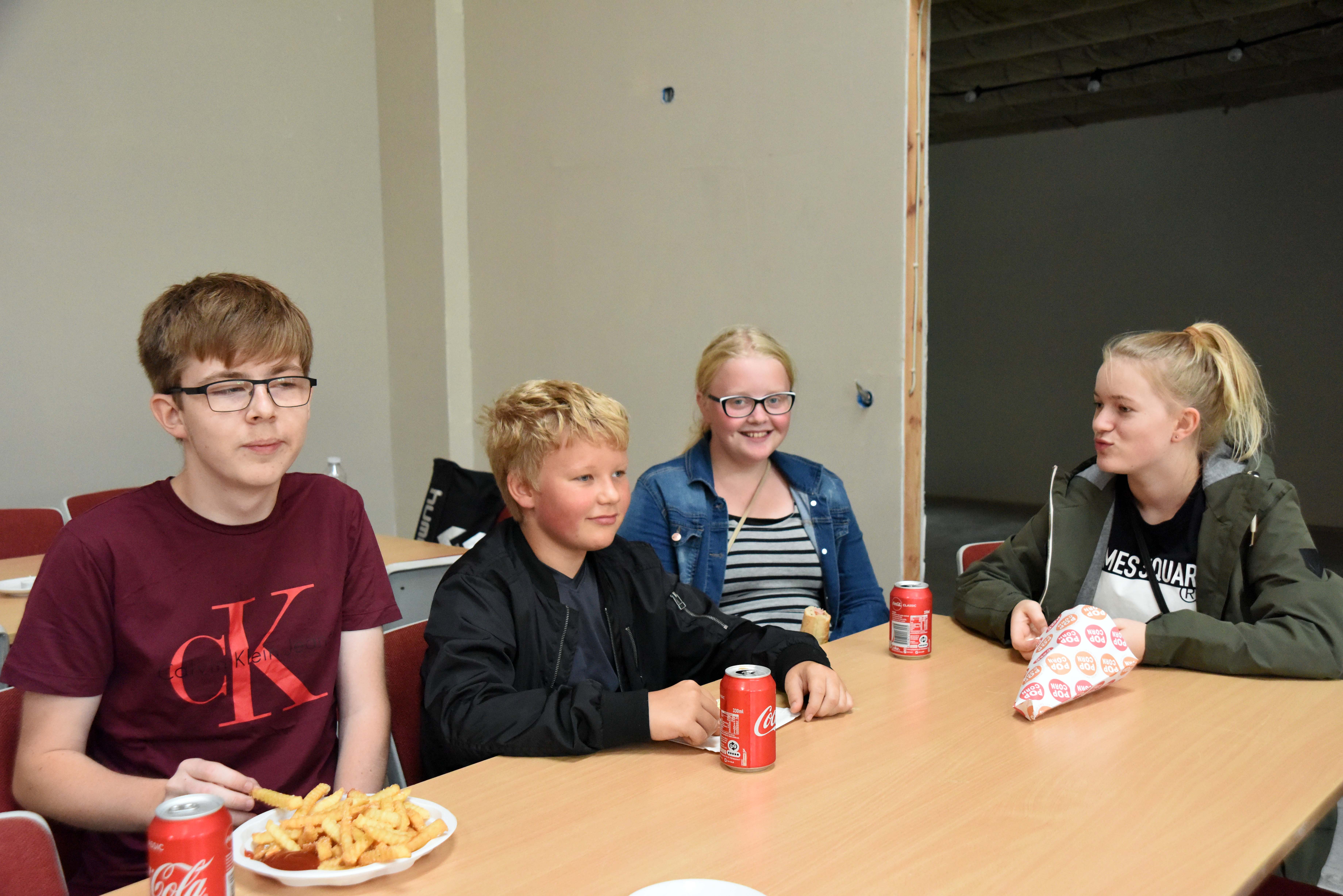 Man kunne nu godt blive sulten af alt den springen rundt. Ved et af bordene var Margrethe, Maja, Thomas og Casper i gang med lidt lækket fra boden, der blev godt betjent af Helene og Steen.