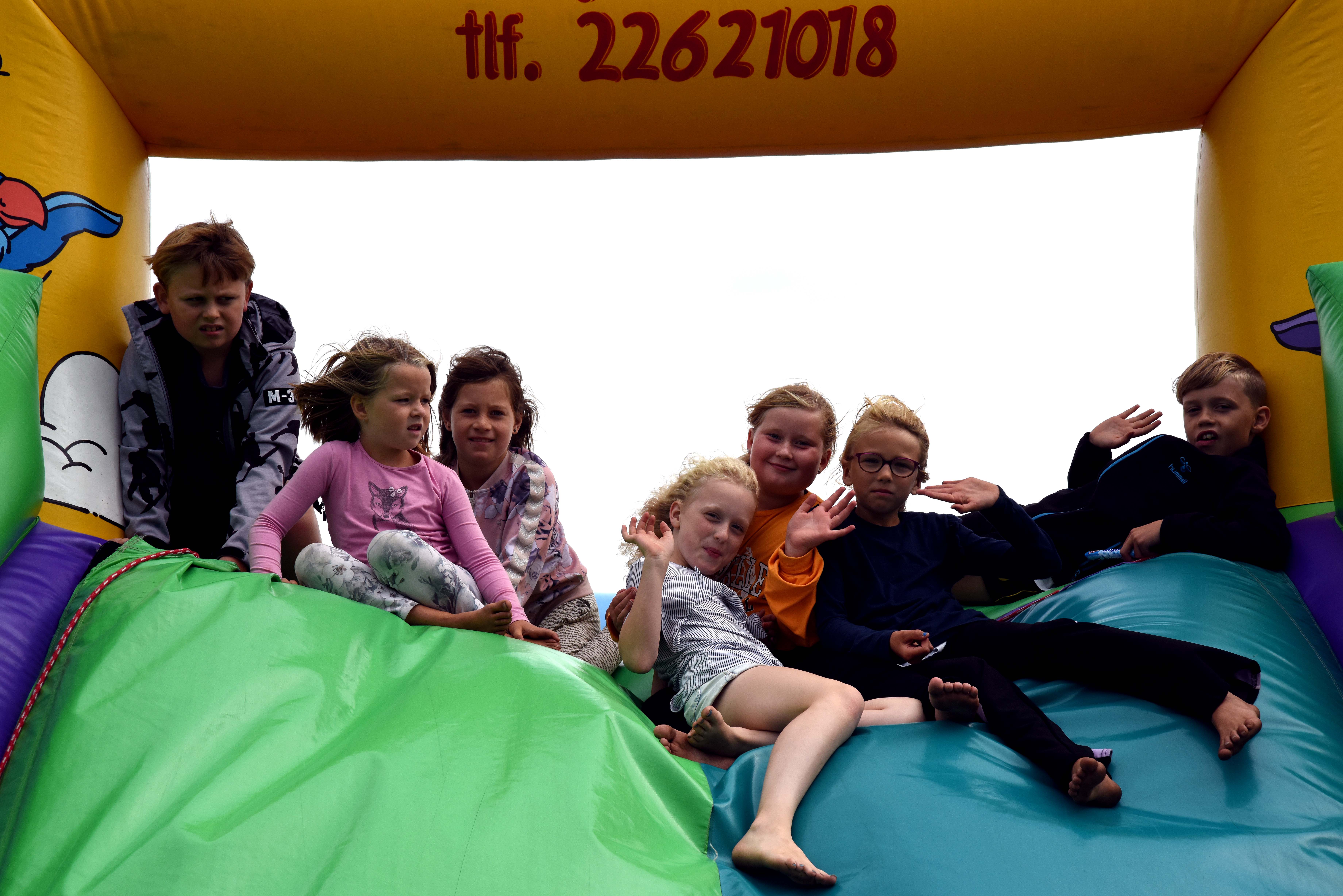 Mens de voksne hyggede sig med Farmer Cup – eller over en kop kaffe – kunne børnene hygge sig på hoppeborgen.