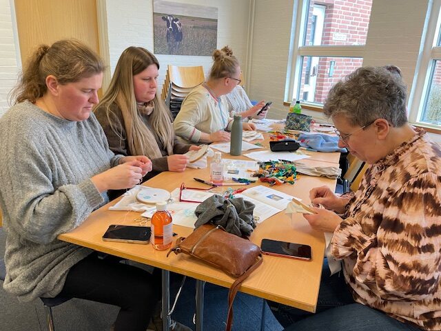 – Når vi kom rundt for at se til de forskellige hold, troede vi tit, at lokalerne var tomme. Så stille var der, for kursisterne var helt fordybede i de små sting og mønstre, fortæller BrodeRibe.