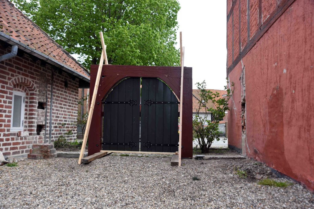 At der er kræset for håndværket ses. Selv de gamle beslag på de to portdele har gennemgået en afrensning og blevet genanvendt. Tegningen til porten har Gregers Bruun skabt, og han har været tro mod den tidligere ports udseende.