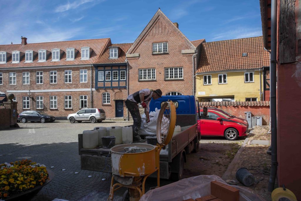 Pladsen mellem huset og den offentlige toiletbygning, der blev restaureret for et par år siden, er ved at blive renoveret af kommunen.