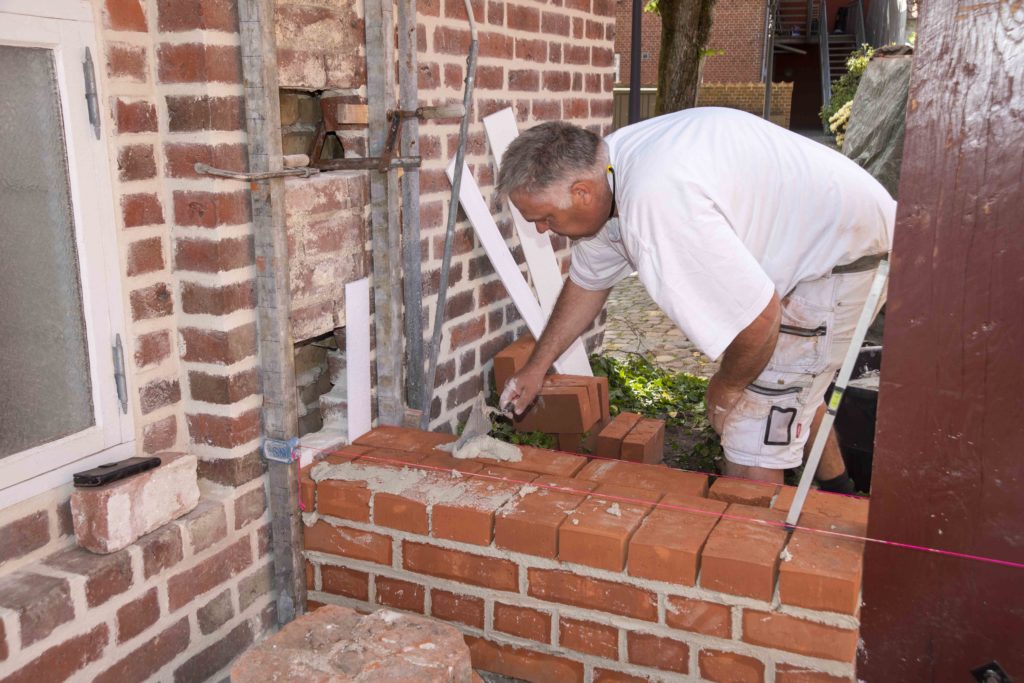 Det er det lokale murerfirma Mogens Blom i Seem, der sammen med Marko Peters klarer murerarbejdet. Dansk/Tysk samarbejde i genforeningsåret, blev det joked lidt med, da RYK IND RIBE lige skulle have de sidste fotos med i artiklen.
