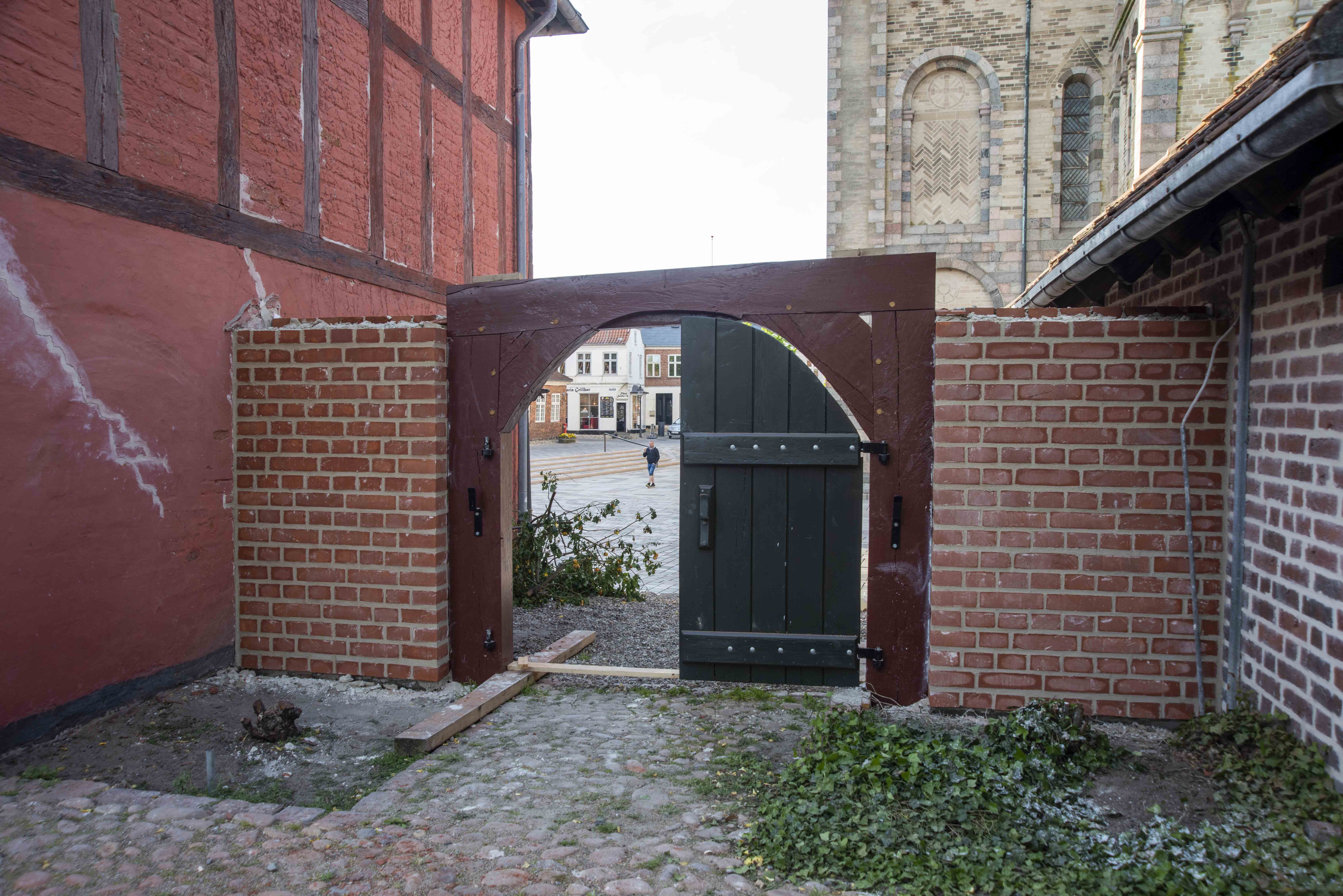 – Vi laver en symbolsk sti hen til porten fra parkeringspladsen. Stien tænkes udført og markeret i de granitsten, som vi tidligere flyttede. En del kommer tilbage. Denne del af projektet bliver lavet i samarbejde med Sydvestjysk Museer. Rosenbedet og granitfladerne kommer til at udgøre udsmykningen af pladsen både foran og bag porten, fortæller Steen Gelsing, der sammen med Bygningskonstruktør Else Callesen fra Esbjerg Kommune på bedste vis får skabt et flot byrum, hvor arbejdet er udført af gode lokale håndværkere.