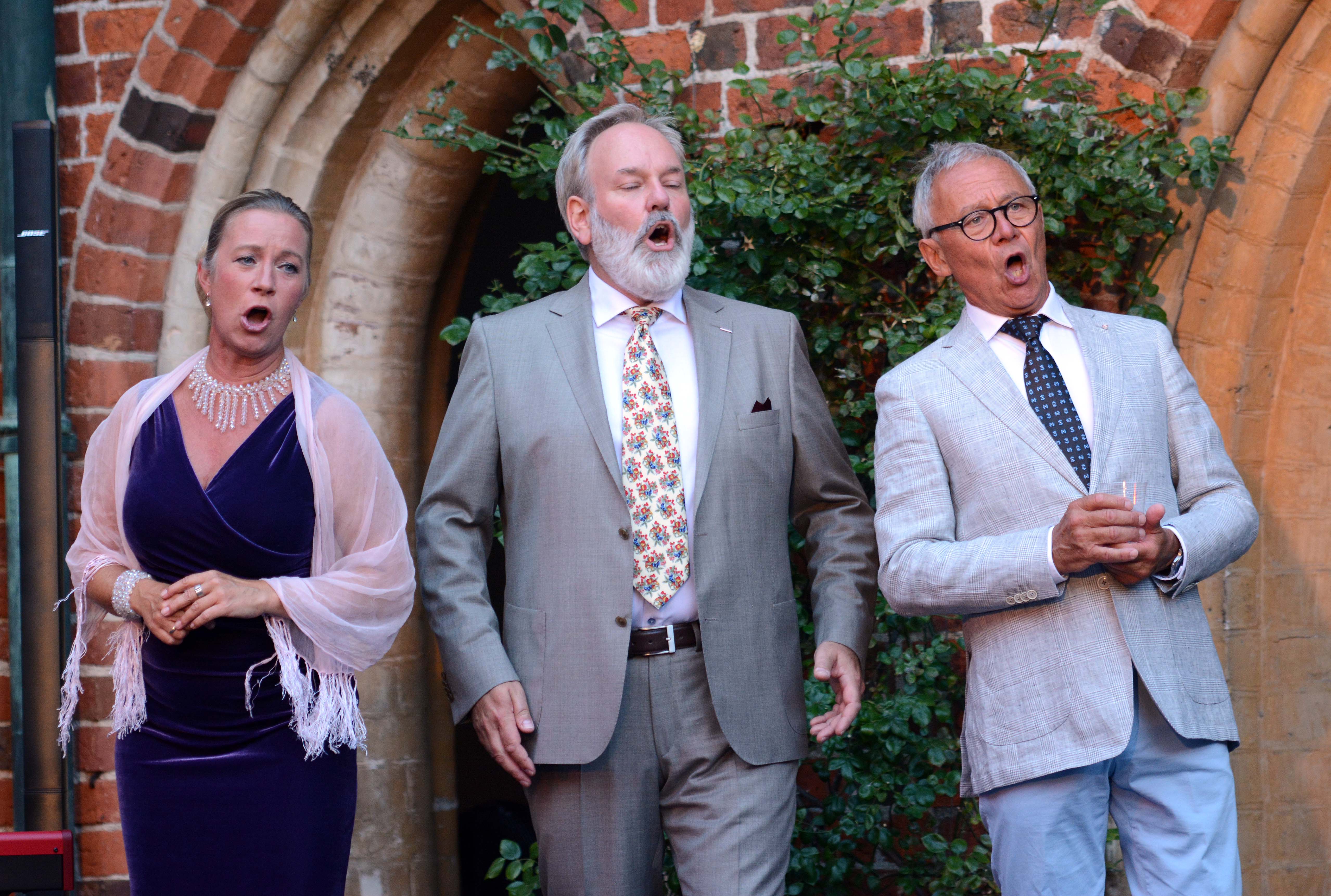 Sangerne blev akkompagneret af kgl. kapelmester Leif Greibe og hans klavertrio med Charlotte Rafn på violin og Nina Reintoft på cello.