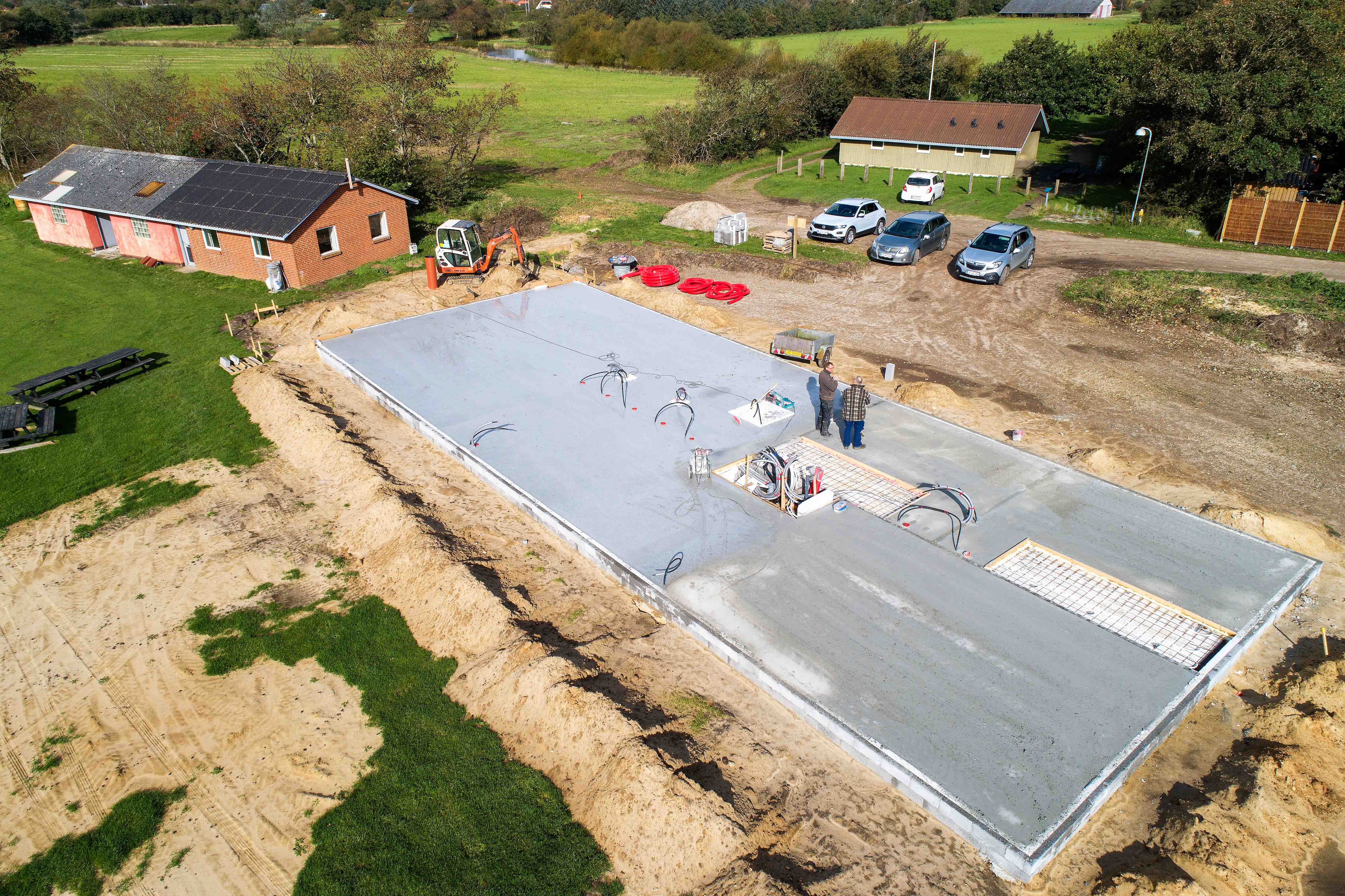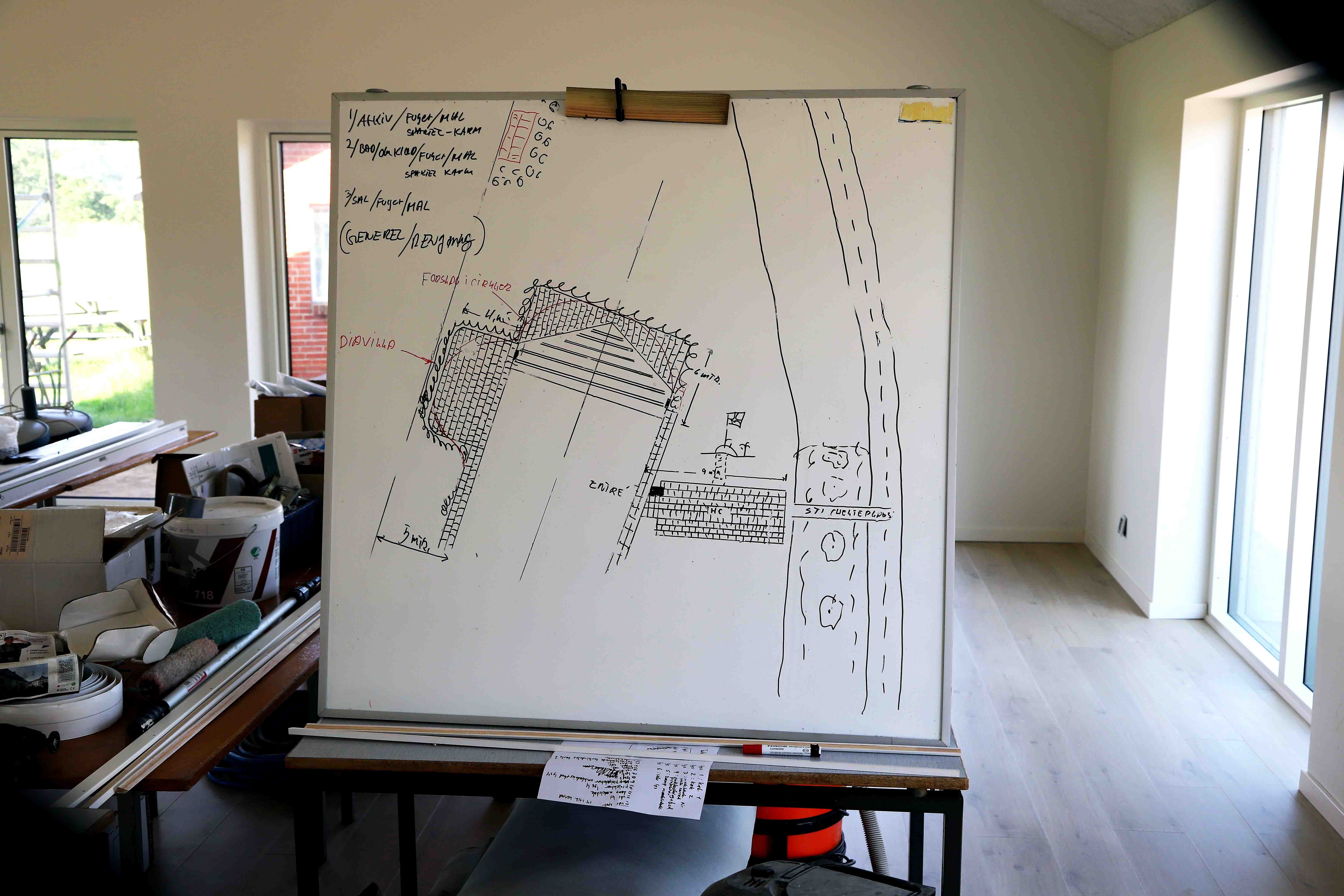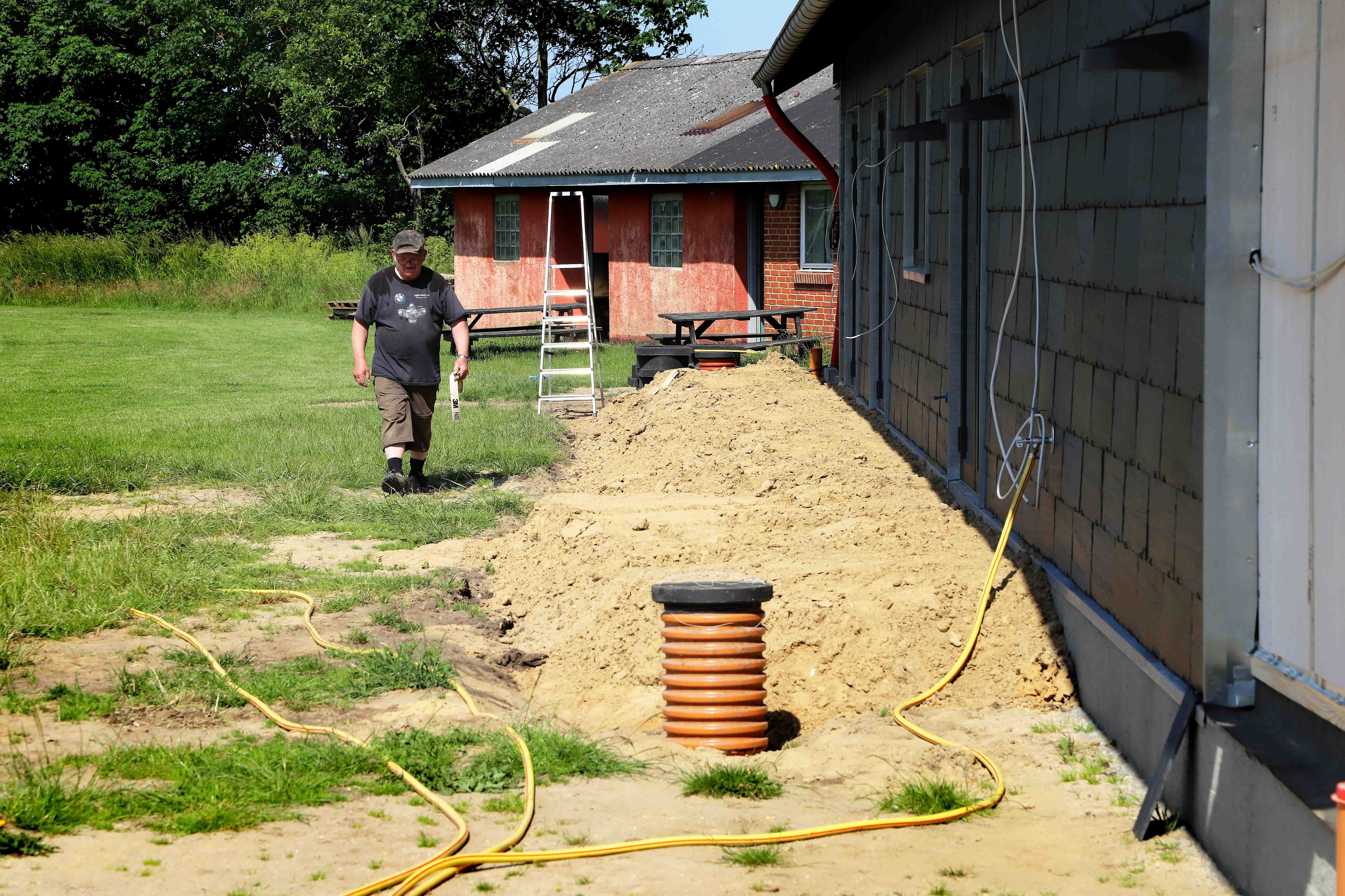 – Huset er blevet rengjort indvendigt, og CM Byg har sørget for at levere store mængder sand, som nu ligger rundt om huset, fortæller Henning, der endnu ikke har de økonomiske rammer på plads ift. indkøb af fliser. Og fibernettet er lagt ind.
