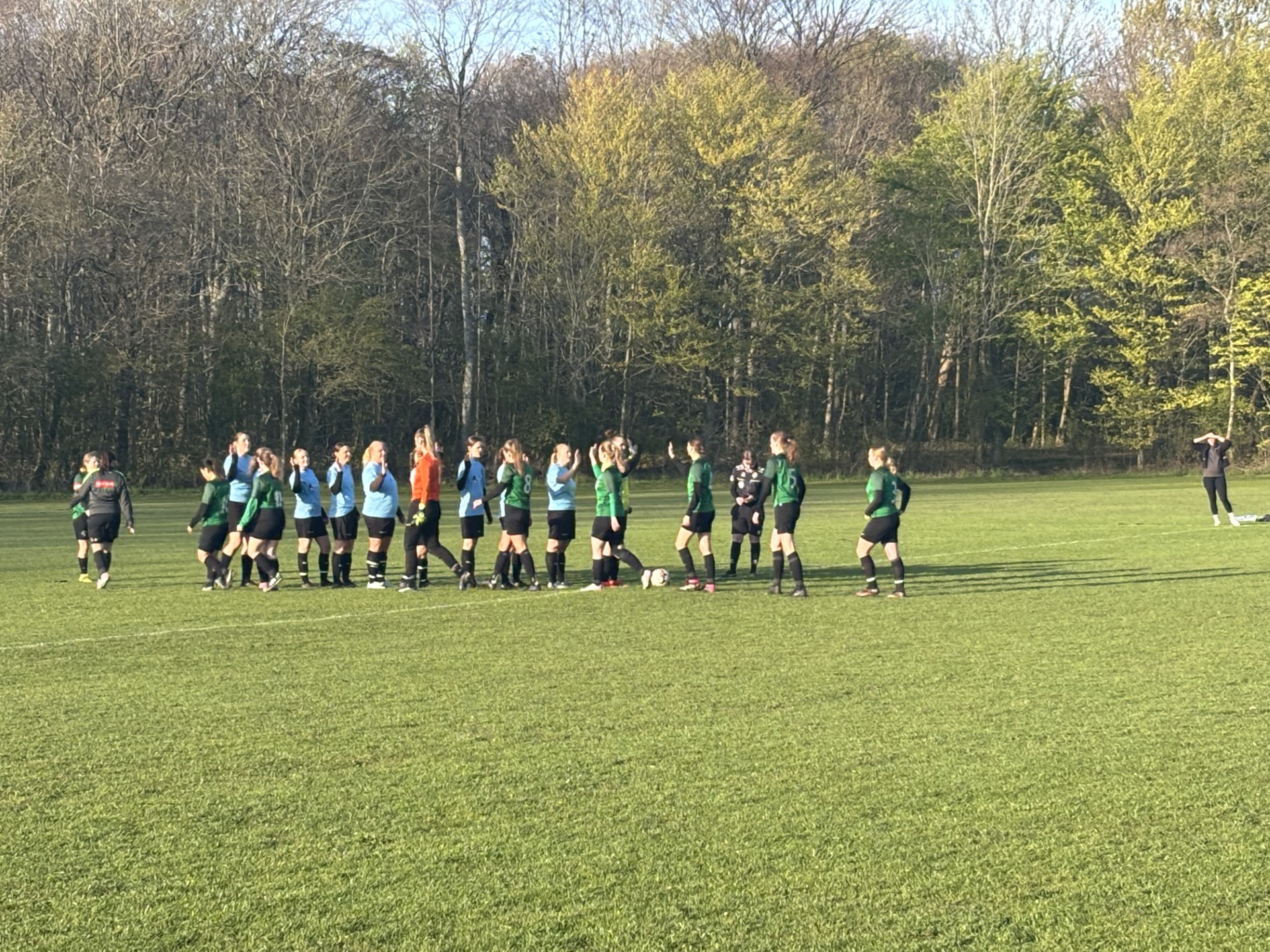 Første halvleg var forholdsvis lige. Men i slutningen af halvlegen scorede Christina Larsen Lolk til 1-0 med et smukt mål.