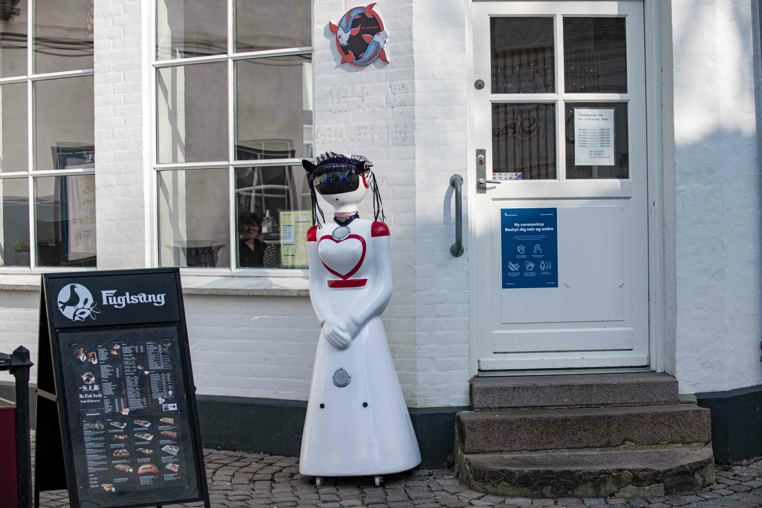 Ved den nye Sushi-bar står der en lille robot. Det ligner det i hvert fald mest. Om den kan melde alt udsolgt eller bare levere lidt hyggemusik, må gæsterne finde ud af, men hyggeligt ser det da ud.