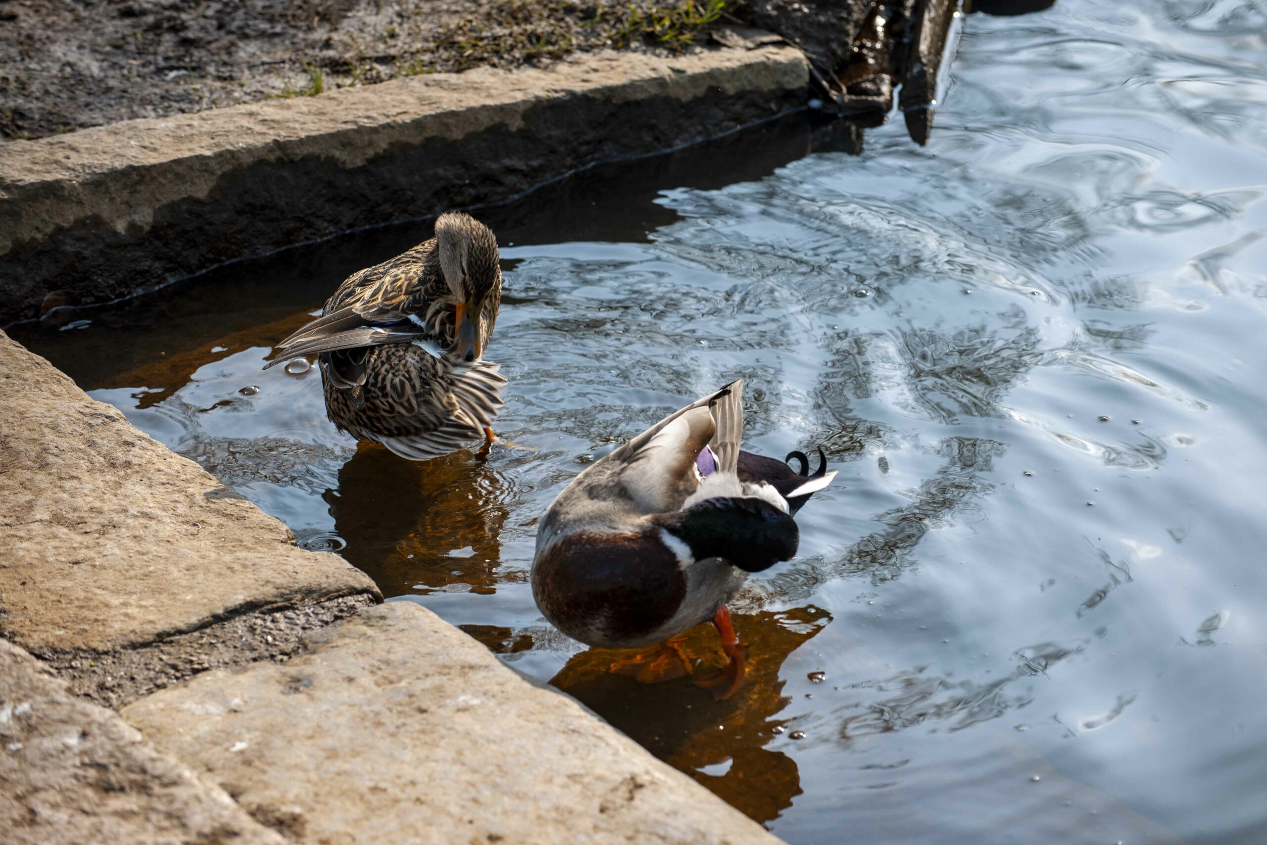 Ved Kunstmuseet Have er var der en gevaldig skræppen. Uden at have særlig meget forstand ænder og deres adfærd, så det nu ud til at en gråand var udsat for flere andrikkers tilnærmelser og der blev kæmpet lidt om opmærksomheden. Ikke noget at sige til, at andrikken der vandt slaget, lige skulle have fjerdragten ordnet lidt igen.