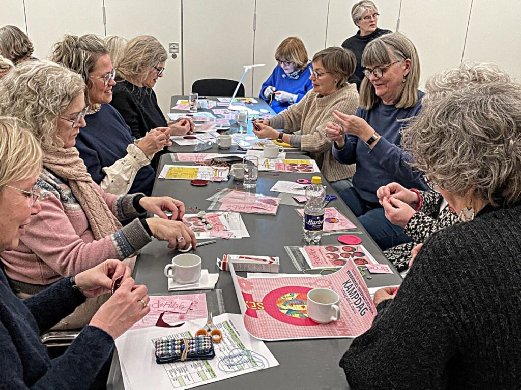 Bestyrelsen i BrodeRibe har haft mange opgaver med planlægning og logistik, men på det seneste har der været rent praktiske opgaver på bordet. Der er især blevet pakket kits med materialer til forskellige broderi-projekter: navneskilte til de frivillige, badges med kvindetegn og Ansgar-broderi.
