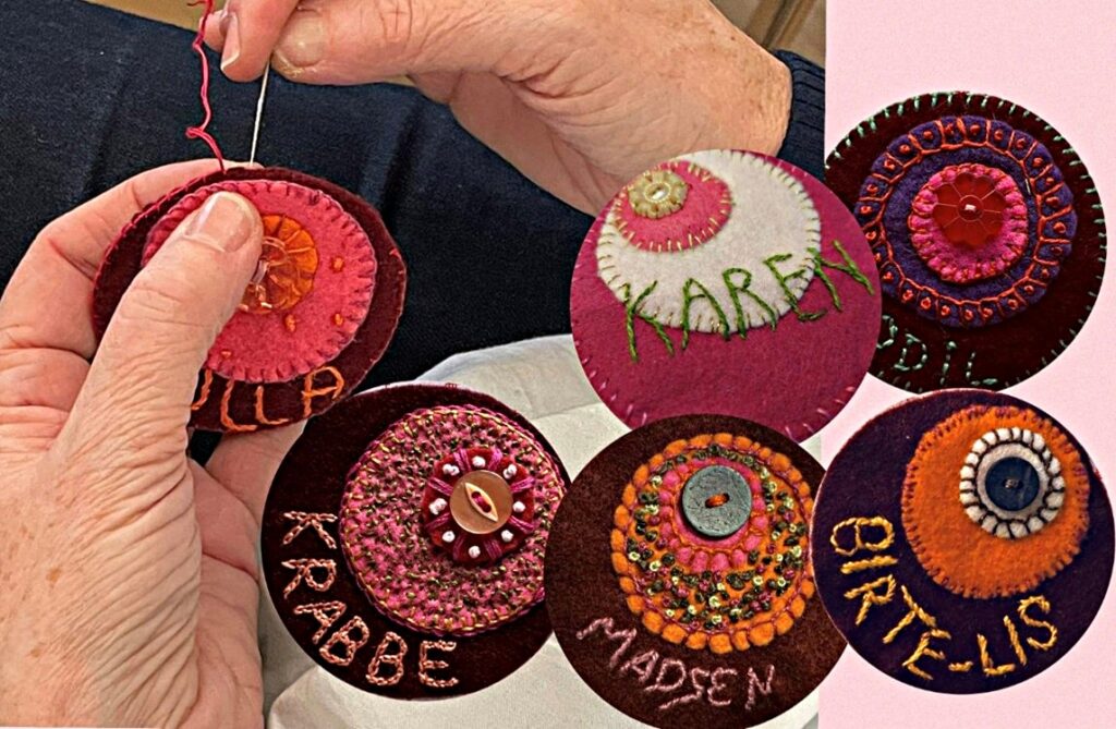 Festivalen kan ikke afvikles uden hjælp fra en masse frivillige. Brodøserne sætter stor pris på, at der er en frivillig, som hjælper til med praktiske opgaver på hver af de forskellige workshops. Forleden var 18 af de cirka 30 frivillige samlet i et festlokale hos Ribe Camping, hvor frivillig-koordinator Mette Krabbe gav informationer om opgaverne. Bagefter var der mulighed for at brodere sig et navneskilt, og under hyggelig snakken blev der skabt mange fine broderier.