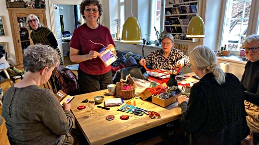 Bestyrelsen i BrodeRibe har haft mange opgaver med planlægning og logistik, men på det seneste har der været rent praktiske opgaver på bordet. Der er især blevet pakket kits med materialer til forskellige broderi-projekter: navneskilte til de frivillige, badges med kvindetegn og Ansgar-broderi.