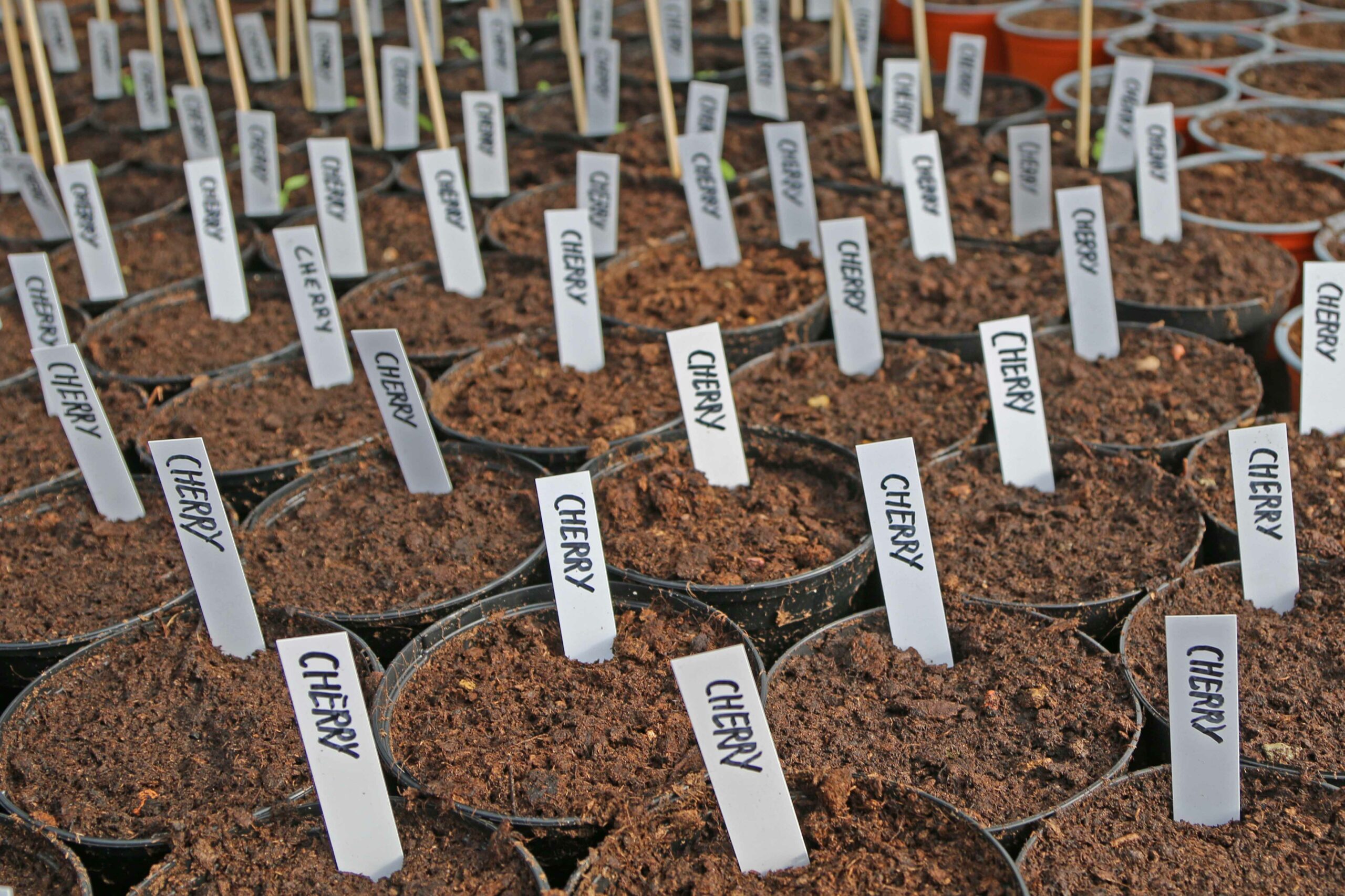 Men det skulle blive mere aktuelt, so længere vi kom ind på værkstedet, hvor der stod mange, mange potter med mærkesedlerne BØF, CHERRY mfl. – Det er her, vi har klargjort til “produktionen” af tomatplanter – og dem skal der nok blive rift om, når først vi kommer hen i de sene forårsmåneder.