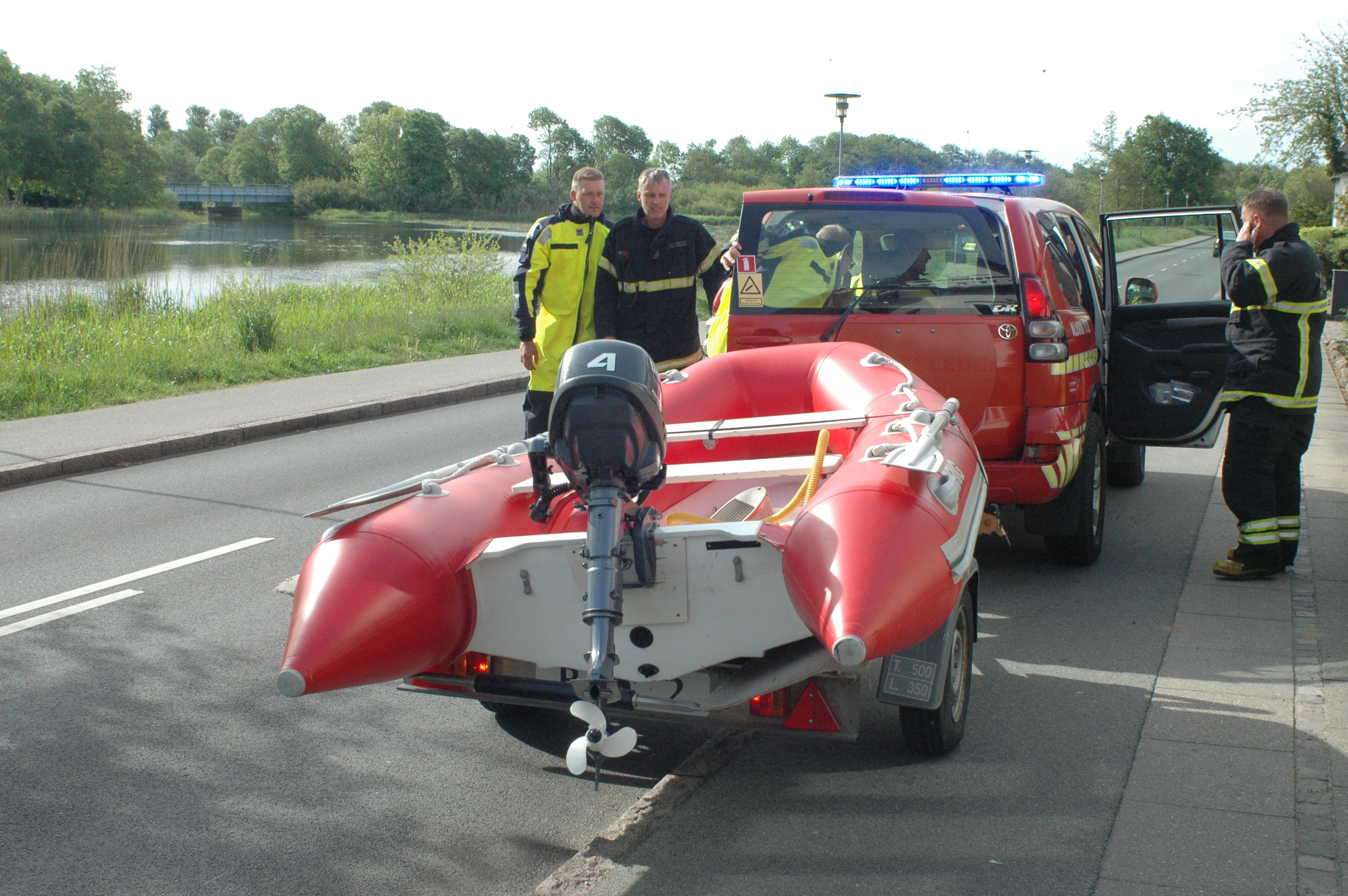 En større redningsaktion blev mandag tidlig formiddag sat i gang, da der blev meldt om en drivende gummibåd på åen ved Kurveholmen.
