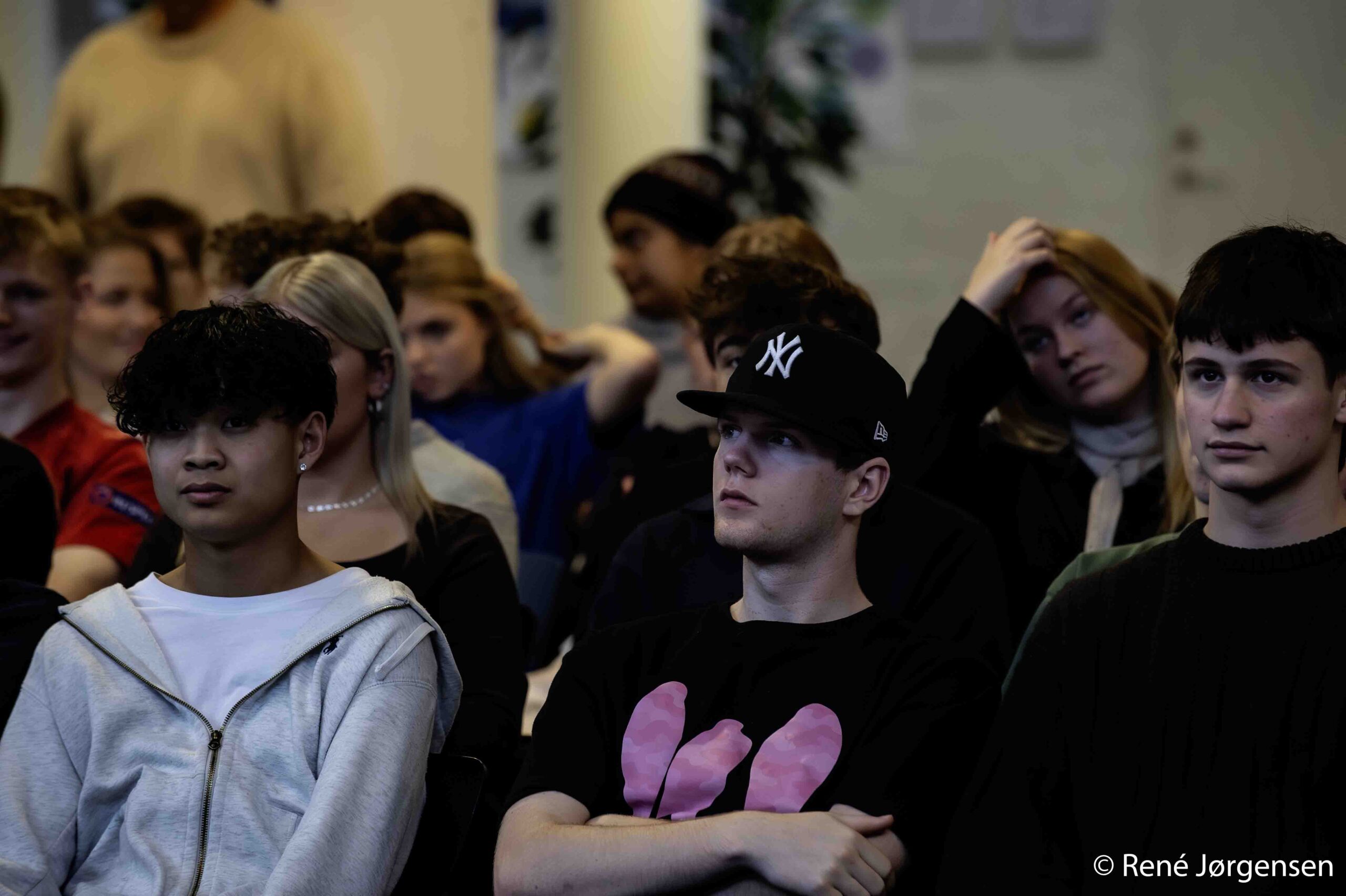 Dagens publikum var elever fra 1.k samfundsfag C (hhx), 1.t samfundsfag A (stx), 1.tw samfundsfag C (stx/htx), 2.y (stx) 1.L samfundsfag C (hhx) og 2. Kl Samfundsfag B sammen med lærerne Agnes Fall Nielsen og Allan Gade Jacobsen.
