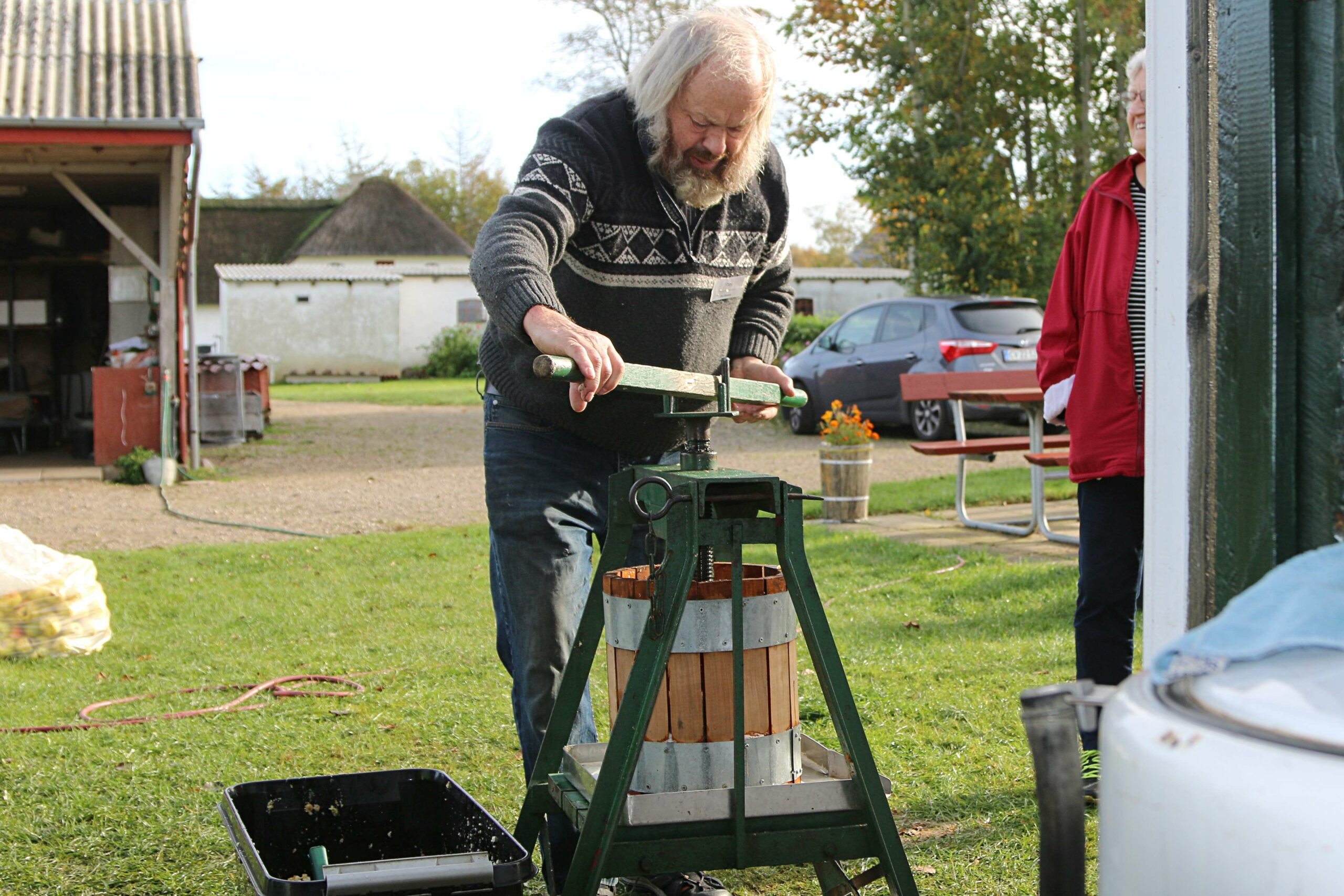 Det var en spændende proces at følge de gamle håndværksmæssige traditioner – og ”æbler var der nok af”. Det blev til mange spande med lækker saft – og så også noget til Hjemstavnsgården.