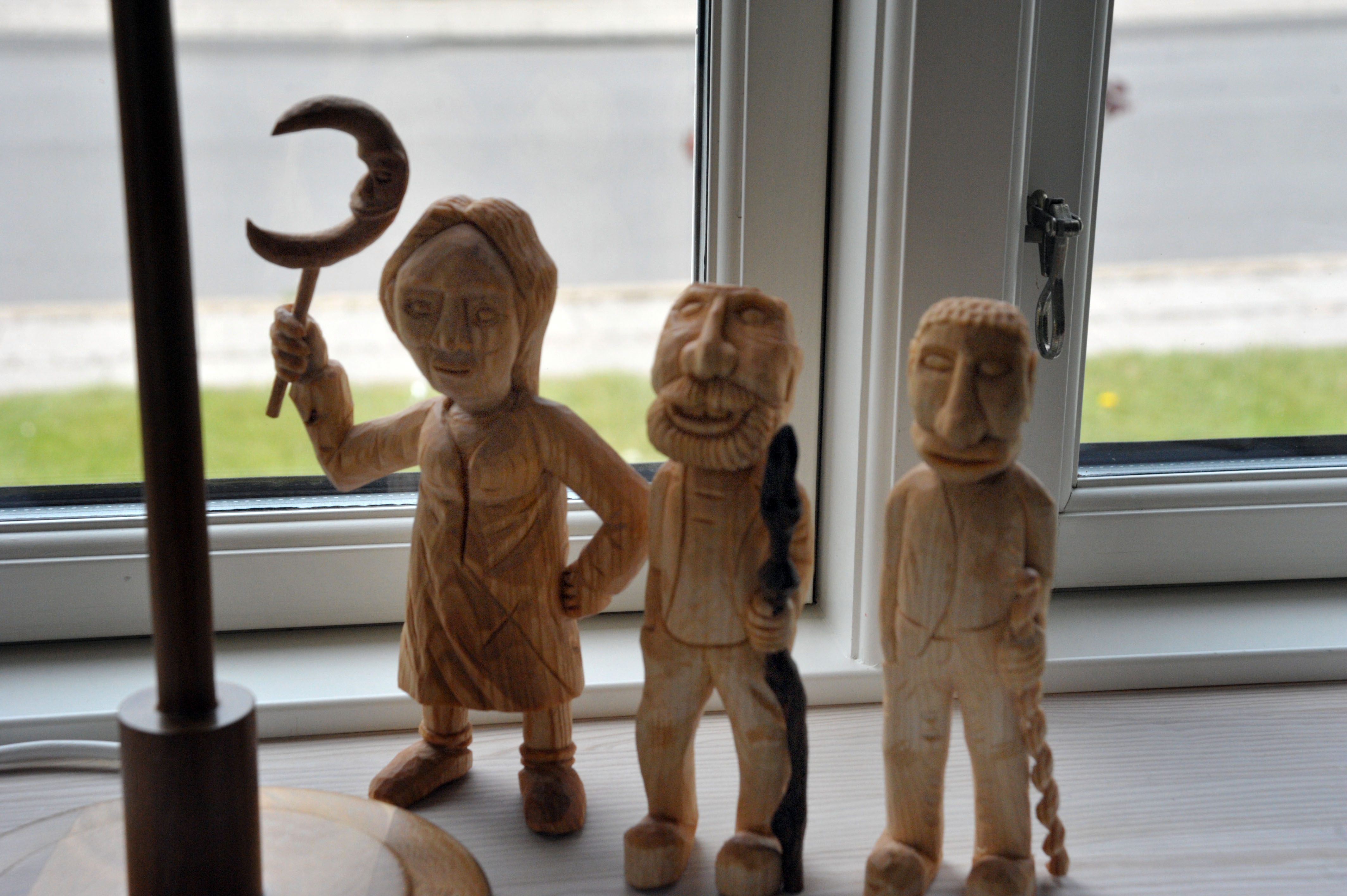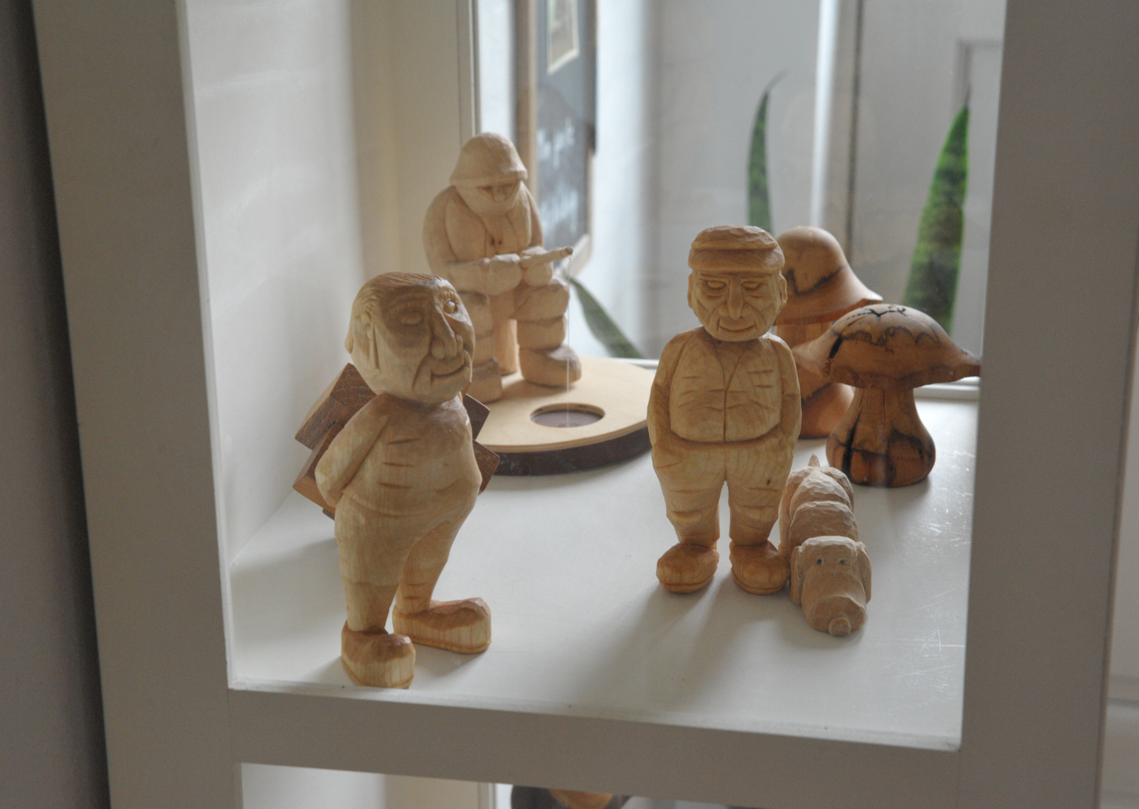 Mesteren er Per Quebec Jensen, der i bedste Emil fra Lønneberg-stil, sidder ovre i sit værksted blandt alle mulige træsorter og producerer de flotte træfigurer. Personligt har jeg svært ved at glemme figuren med hovedet oppe i røven, – den har jeg grinet af mange gange.