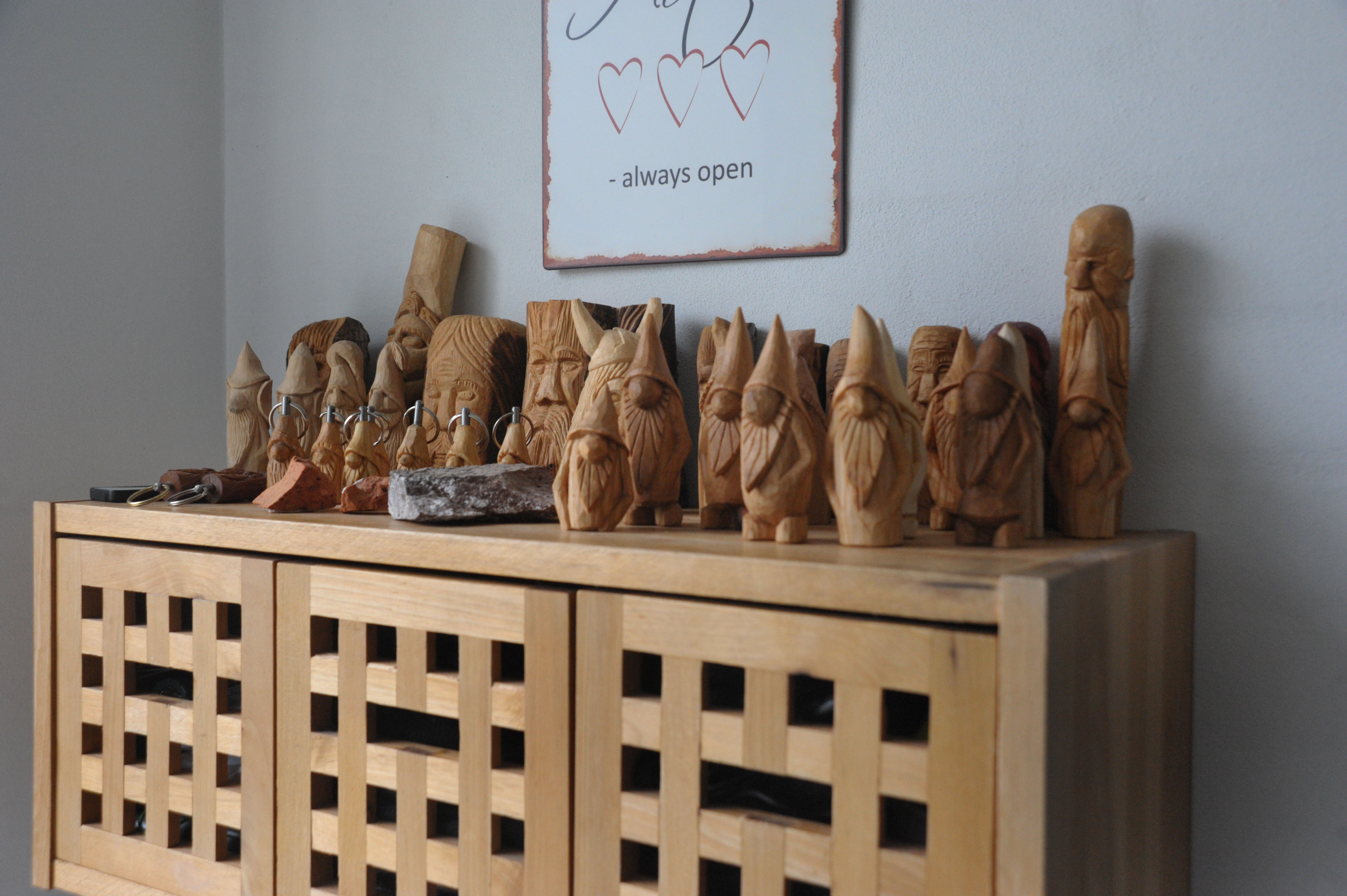 I dag er det ikke drejearbejdet, men de mange sjove gnomer, der får liv i Pers værksted – eller Bubbas værksted, som et af børnebørnene døbte værkstedet.