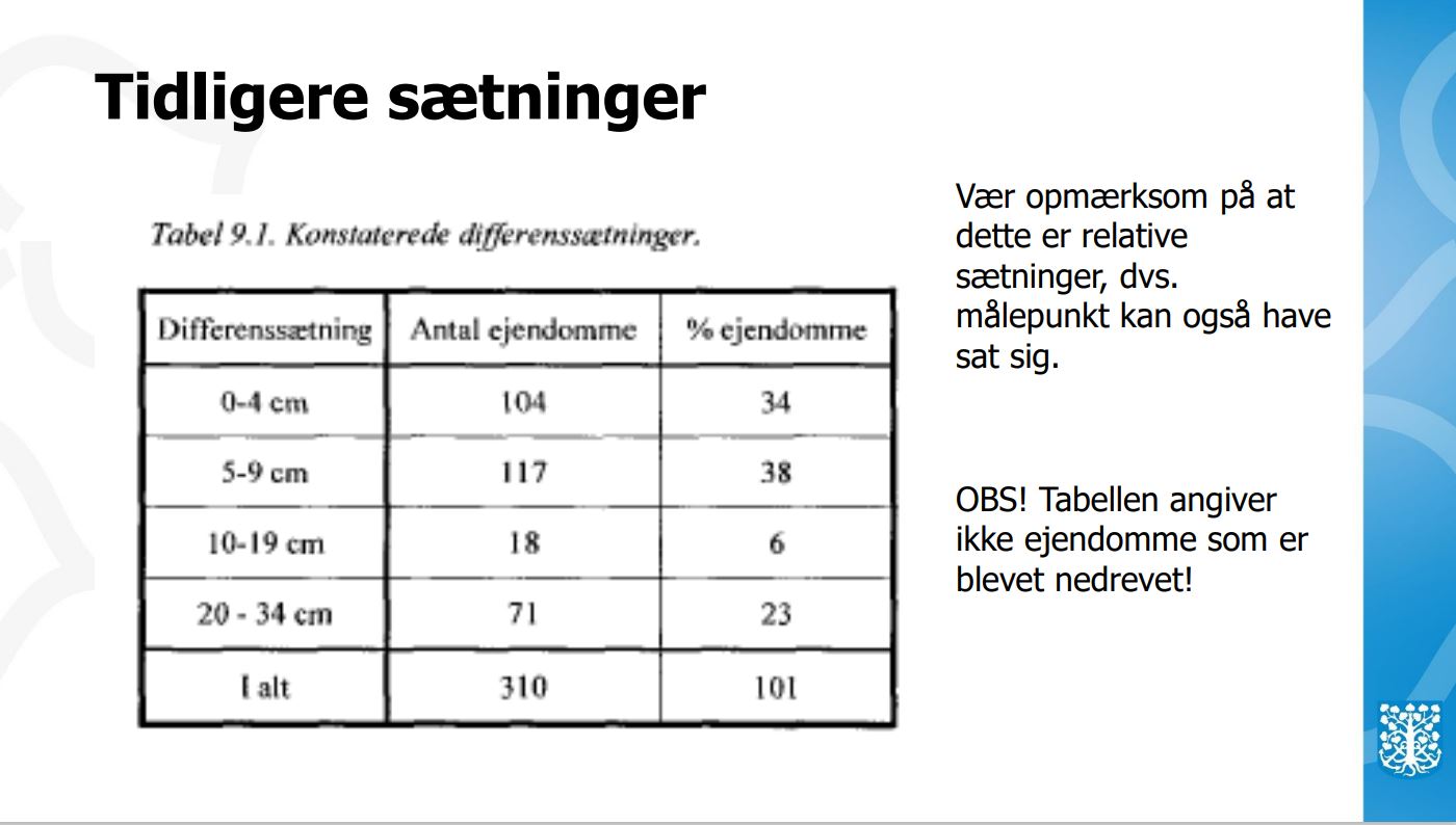 Han fortalte videre, at 300 huse er undersøgt for sætninger – heraf har 104 små sætninger svarende til 0-4 cm.