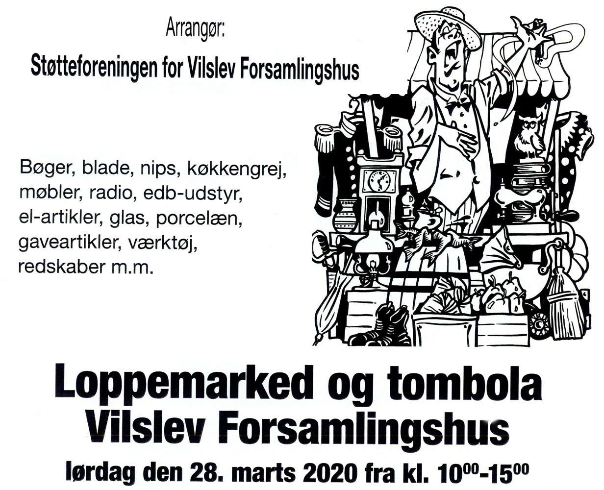 Måske handler det for dig ikke om at gøre en god handel – du har været i gang med forårsoprydning og fået en del til overs, som du vil forære foreningen i Vilslev. En løbeseddel fortæller om, at større effekter kan afhentes og allerede fredag den 27. marts kan man kigge forbi fra kl. 13.00 – 18.00 med ting man gerne vil forære bort.