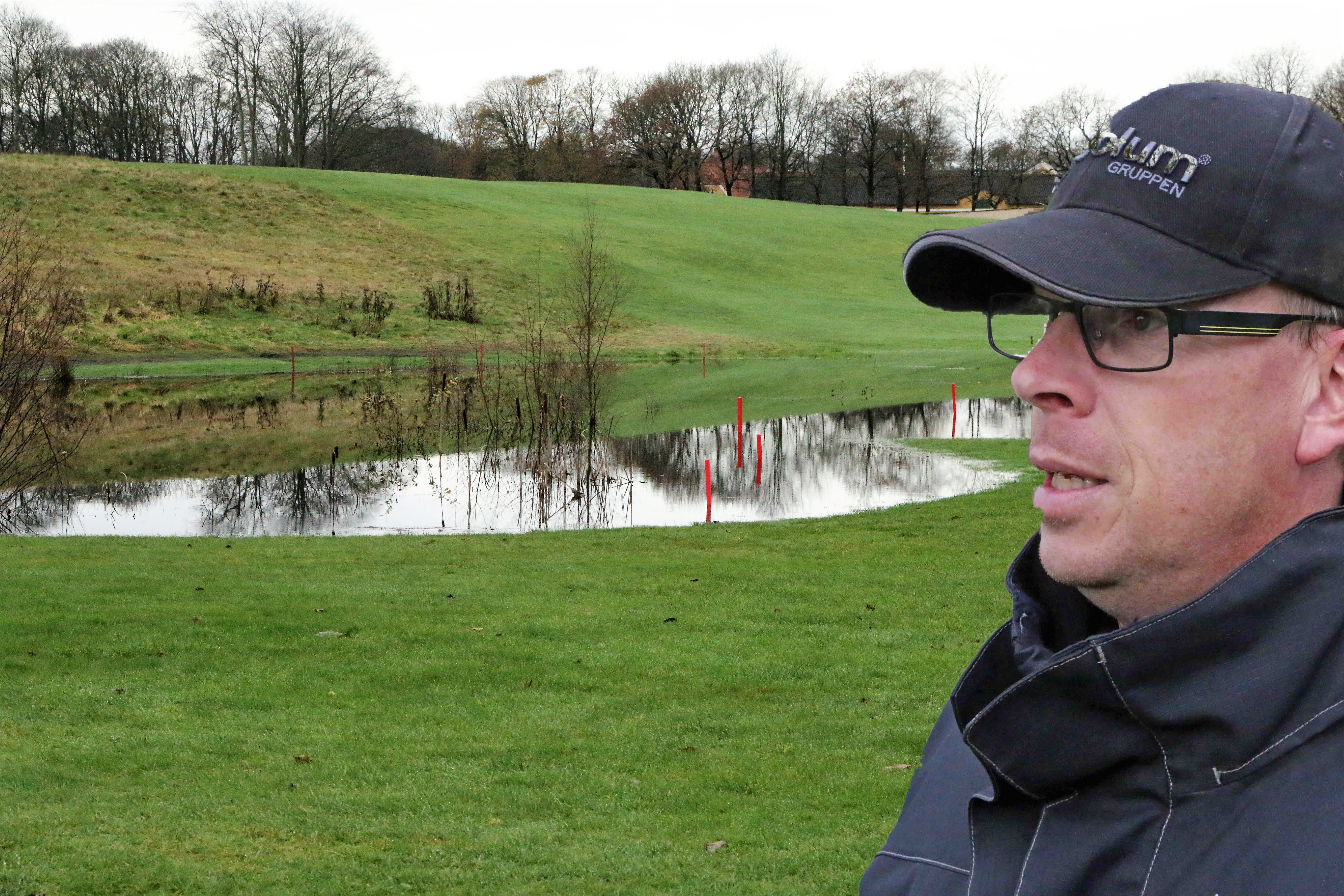 Greenkeeperen har sammen med de 5 banemedhjælpere haft rigeligt at se til med vandmasserne – og bedre gik det ikke, da en brønd med dræn gik i stykker, så nu bliver vandet pumpet bort på anden vis.