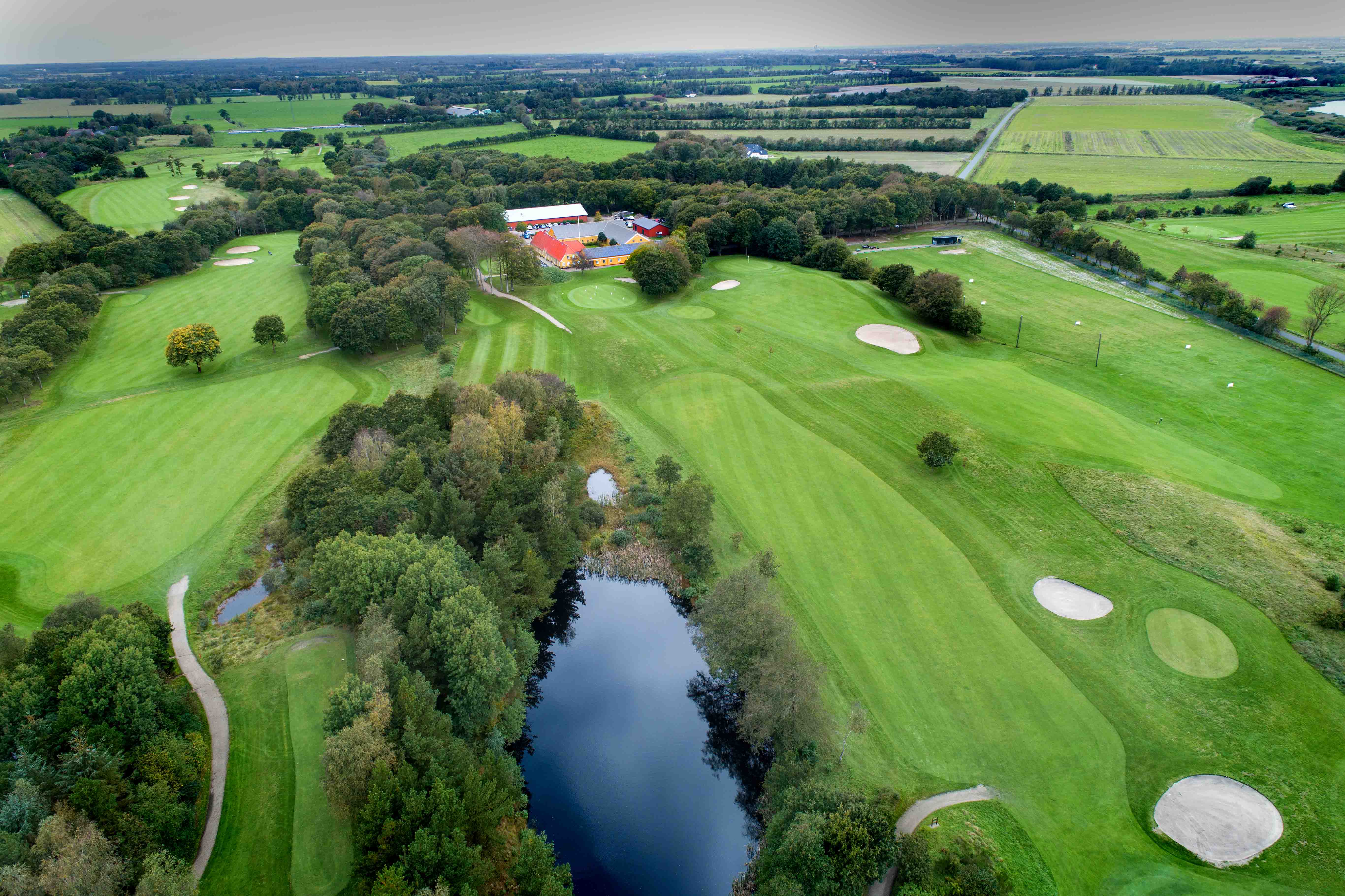 Dronefoto: Ove Detlevsen – Golfbanerne ligger idyllisk med træer og vandhuller – på sandet jord