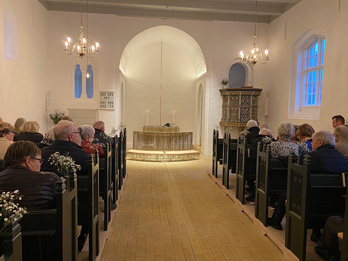 Efter den officielle indvielse søndag formiddag, var der sammenkomst i menighedshuset i Gredstedbro, og kirkeværge Yrsa Kærgaard fortæller, at der var en rigtig god stemning og tilfredshed med den ”nye” kirke.